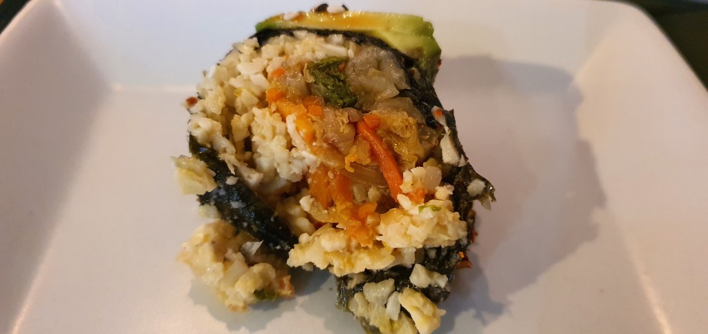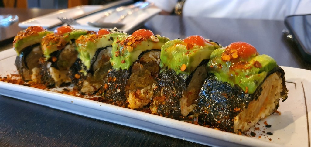 At close glance, you can see that the roll has crushed almond used as the rice substitute and is perfect for those on a Keto diet. When I read the menu, I was expecting the almond to be hard and crunchy but surprisingly it was soft and pretty similar to rice in a roll. The kimchi was quite mild and the avocado added an additional layer of creaminess to the roll. It is basically an extremely light starter or snack