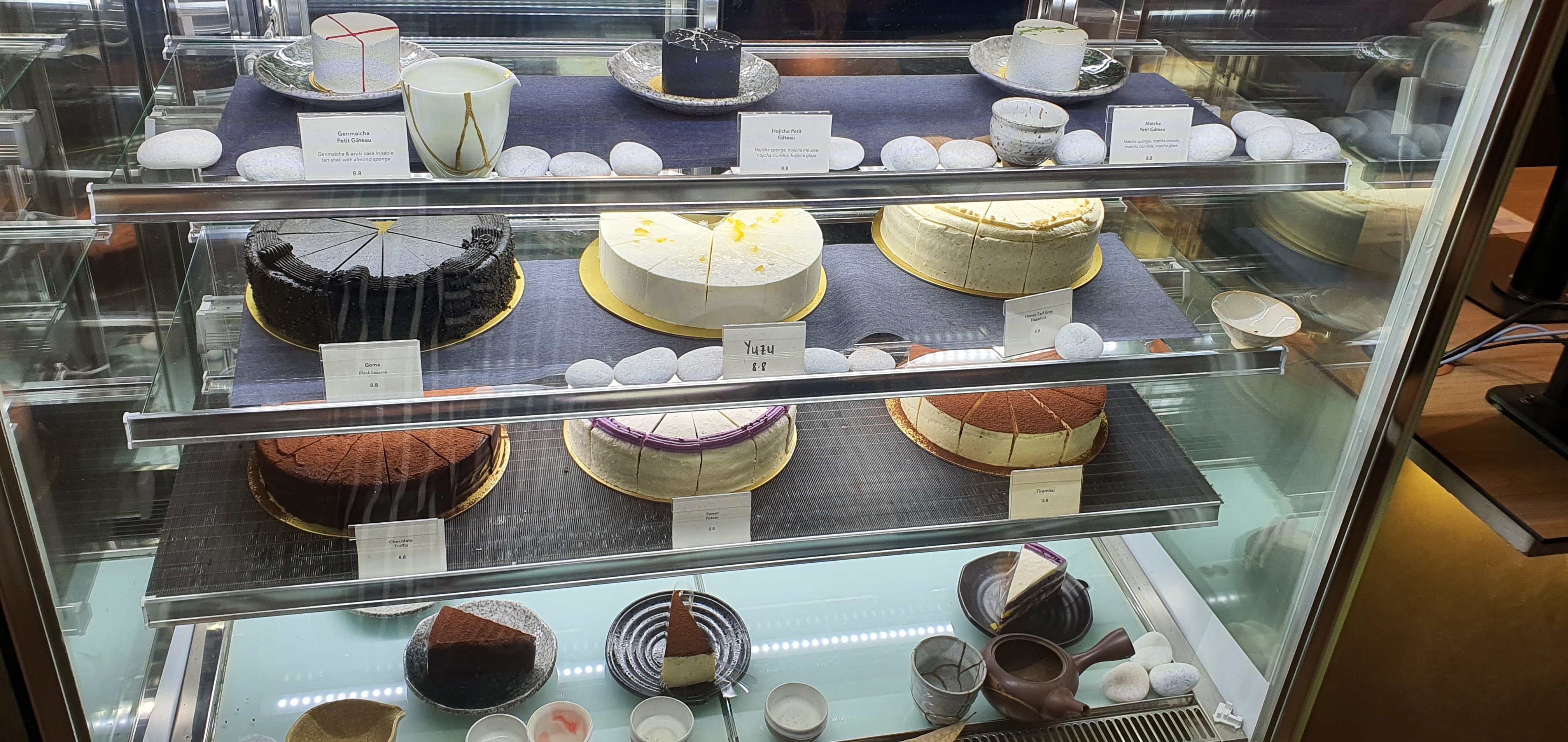The cake selection available here is mostly tea flavoured like the Hojicha Petit Gateau, Honey Earl Grey, Matcha Petit Gateau and more. Some of the non-tea flavoured ones but pretty interesting ones include the Goma ( black sesame) and sweet potato