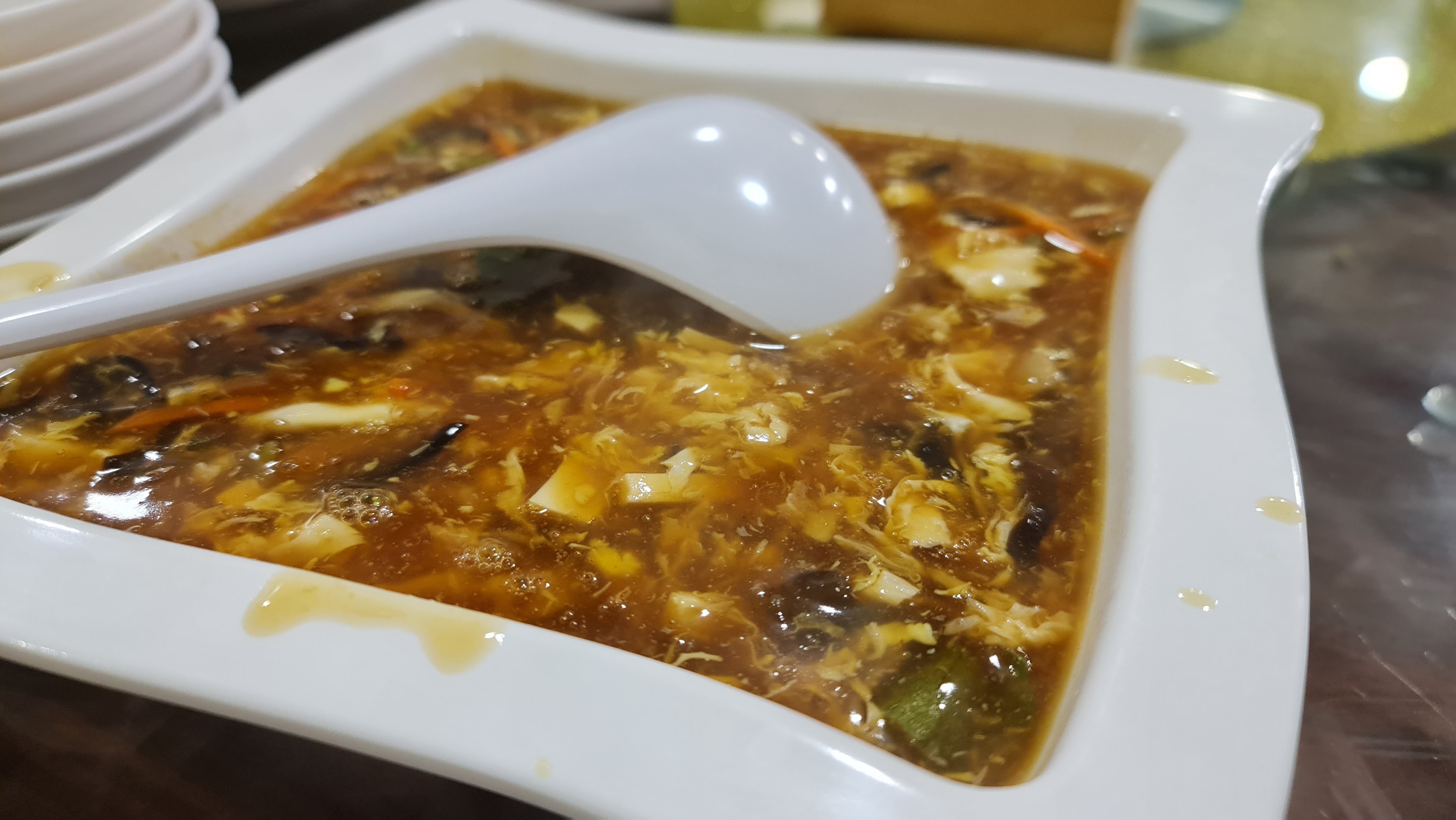 We had the fish maw soup with scallion pancakes as well as the spicy stir fry pork with mushroom and peppers. The scallion pancakes were particularly very crispy on the outside with the inside soft but with a nice chew which brings out the fragrance of the scallions. The fish maw soup was thick with a lot of ingredients and tasted better with more vinegar added. The stir fry pork was slightly too oily for my taste