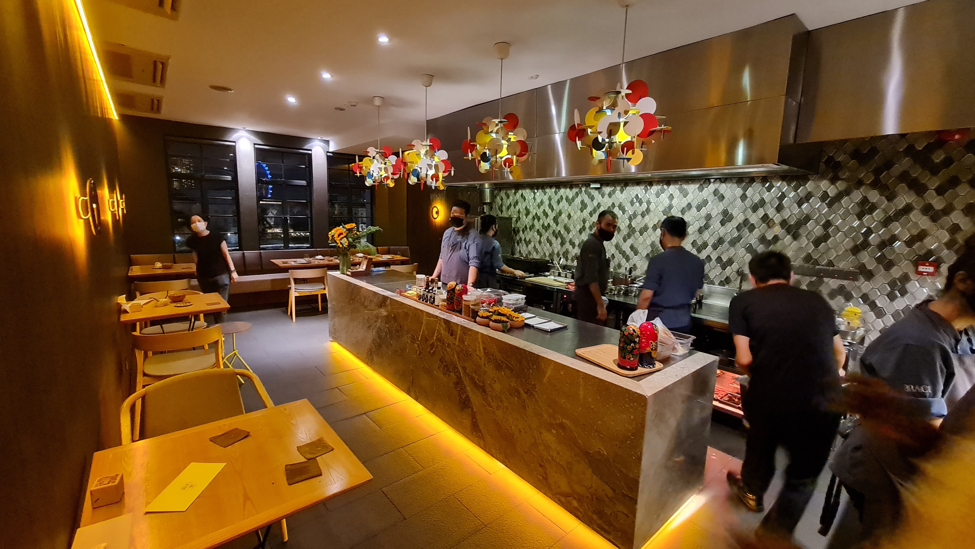 The restaurant sits 20 with another open bar sitting 30 patrons. The main draw of the restaurant is the open kitchen concept which takes centerstage with the Josper oven and the Shichirin grill which is supposed to produce optimal results in cooking. The open food preparation island also means you get a full view of the chef’s preparation of your meal and allows interaction between patrons and the chefs