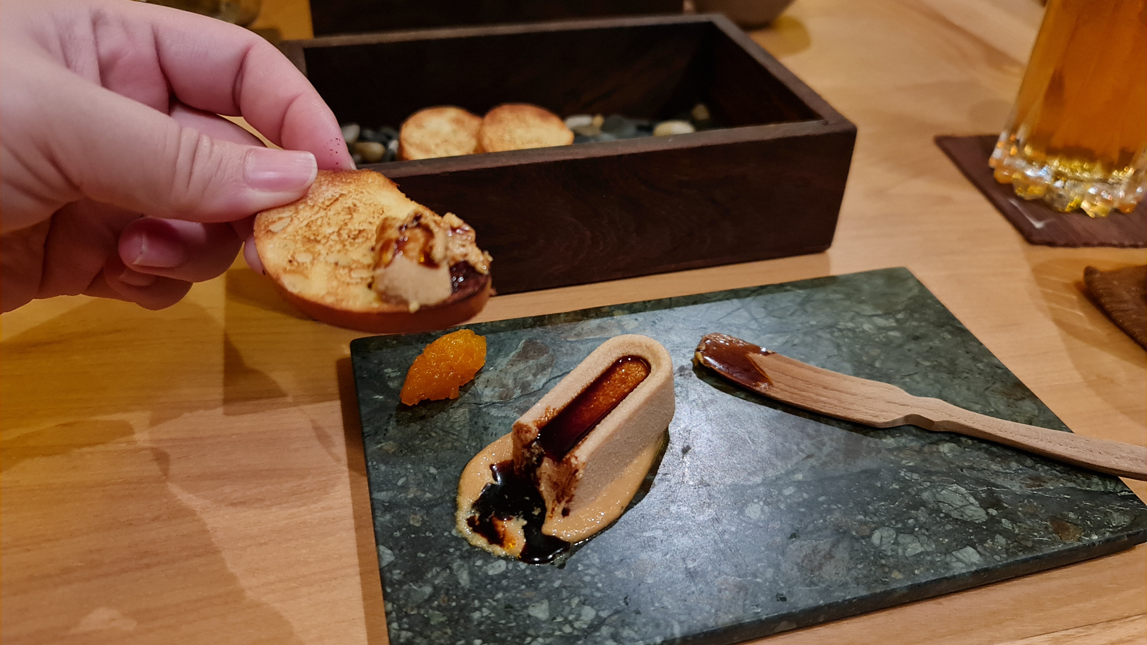 We went for the 7-course signature degustation at SGD 208, at the time of writing, I checked their menu online and the SGD 208 menu is now a 6-course menu and there is a new 8-course menu at SGD 258. The first 2 items on the menu are foie gras and Tagliolini which is payable and the &-course only starts from the Season’s menu which changes depending on the season you visit the restaurant. As we visited in September, the menu reflected the falls flavours