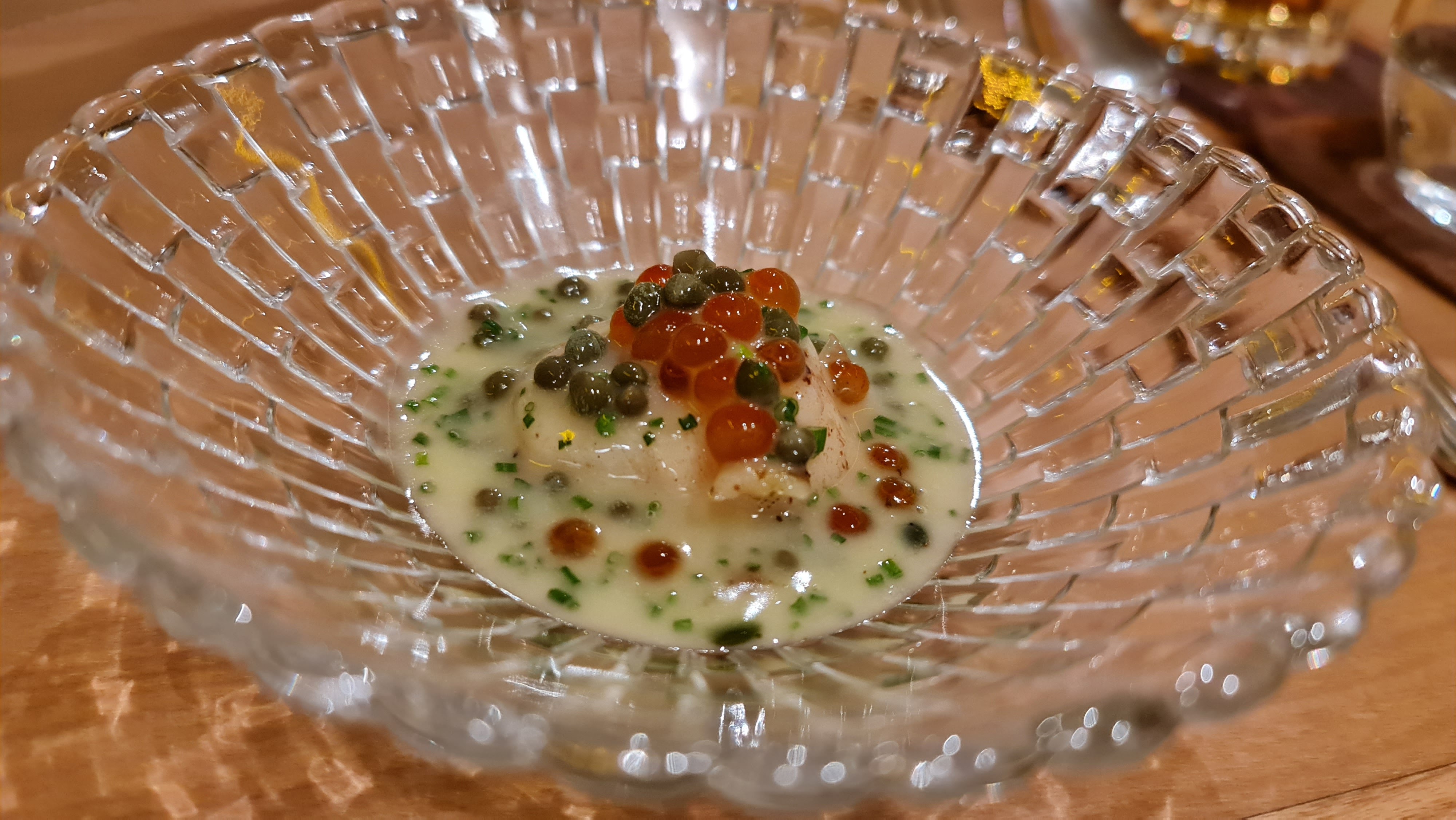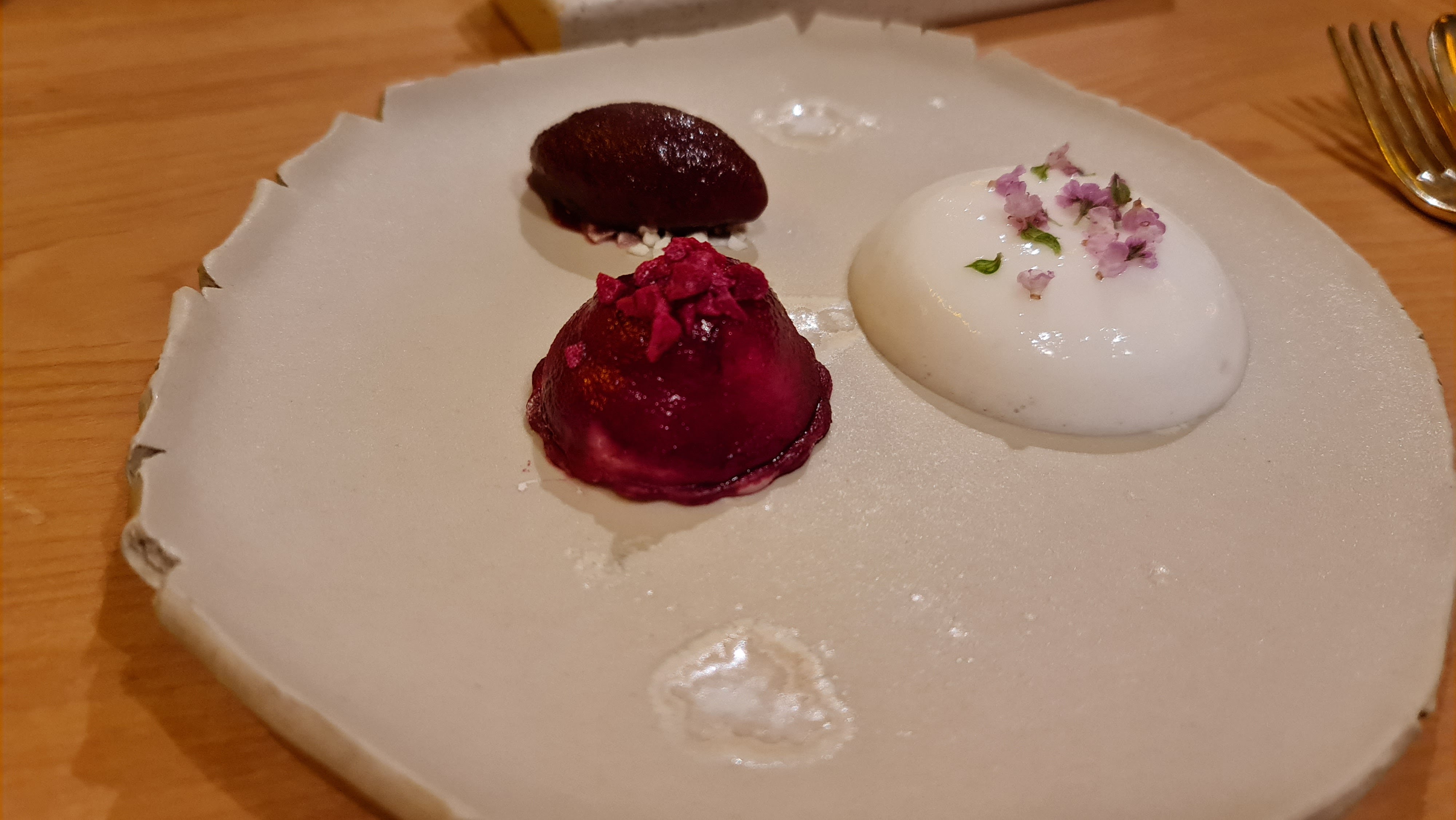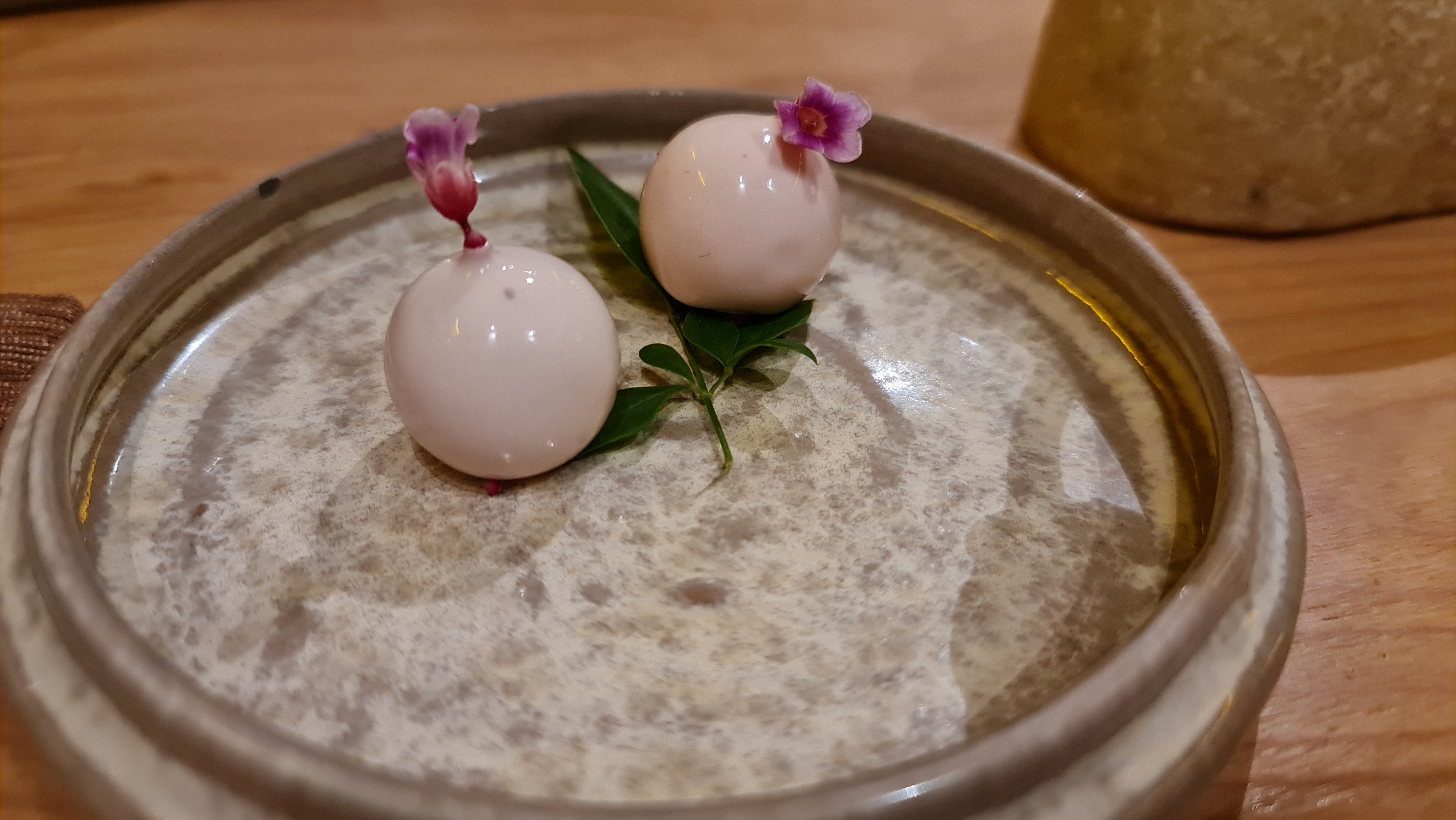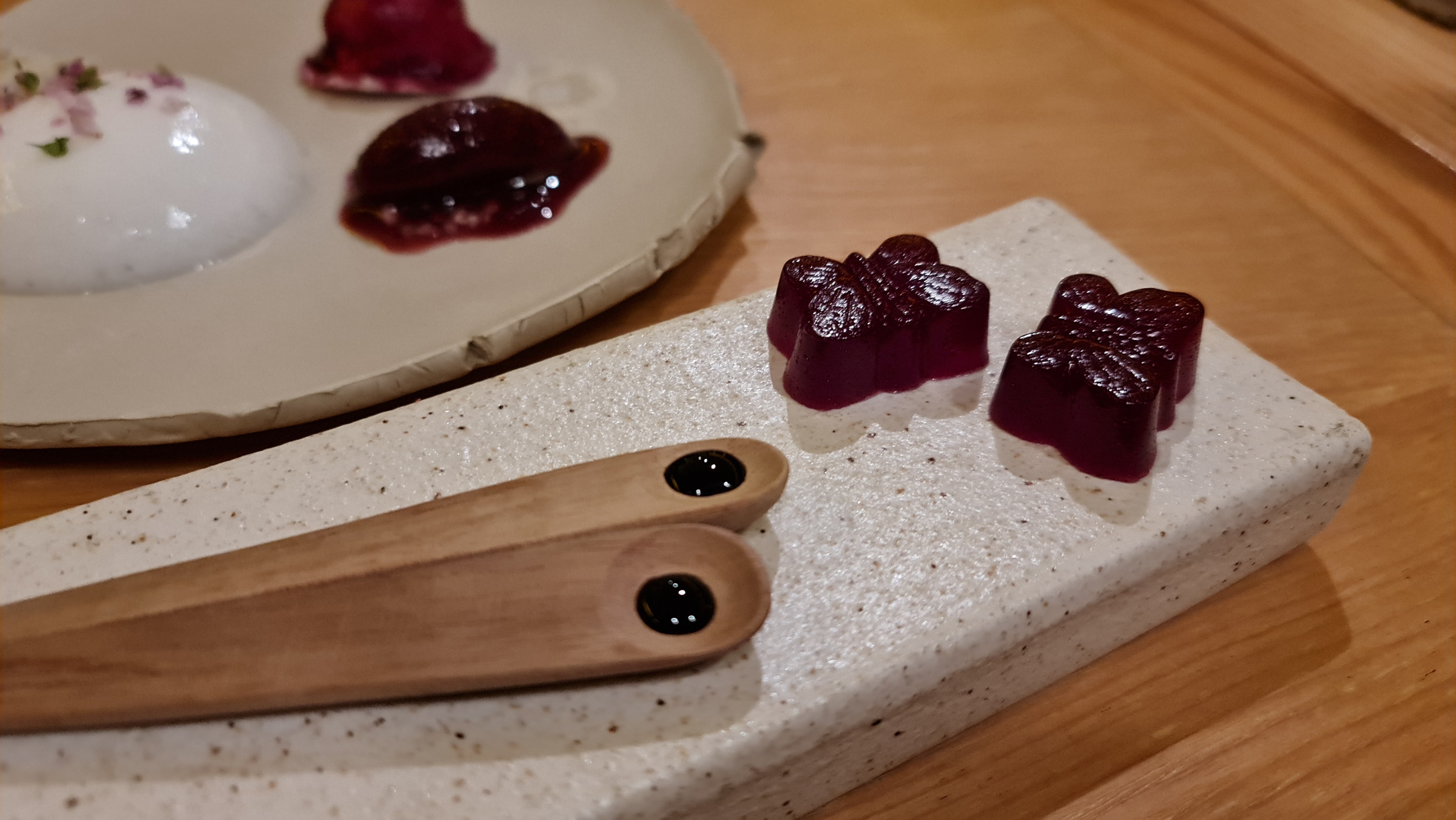 The other dish that left an impression on me was this 100-year-old balsamic vinegar served with cherry gummies. The Giusti Balsamic Vinegar of Modena collection is the result of skills and experience handed down over four centuries by the Giusti family since 1605. The oldest balsamic vinegar brand in Italy, Giusti 100 is the most exclusive in the Giusti’s Reserve, extracted every year in limited quantities from the oldest casks. Retailing at 100 ml at Euro 580, it is extremely difficult to get a bottle of this vinegar. Enjoying just 2 drops of the vinegar with the gummy, you can taste the deep fermentation of the vinegar flavours elevating the sweet and sour notes of the gummy taking this dish to a totally different level. This was also the 2nd time the Chef came to our table to talk about the heritage of the vinegar