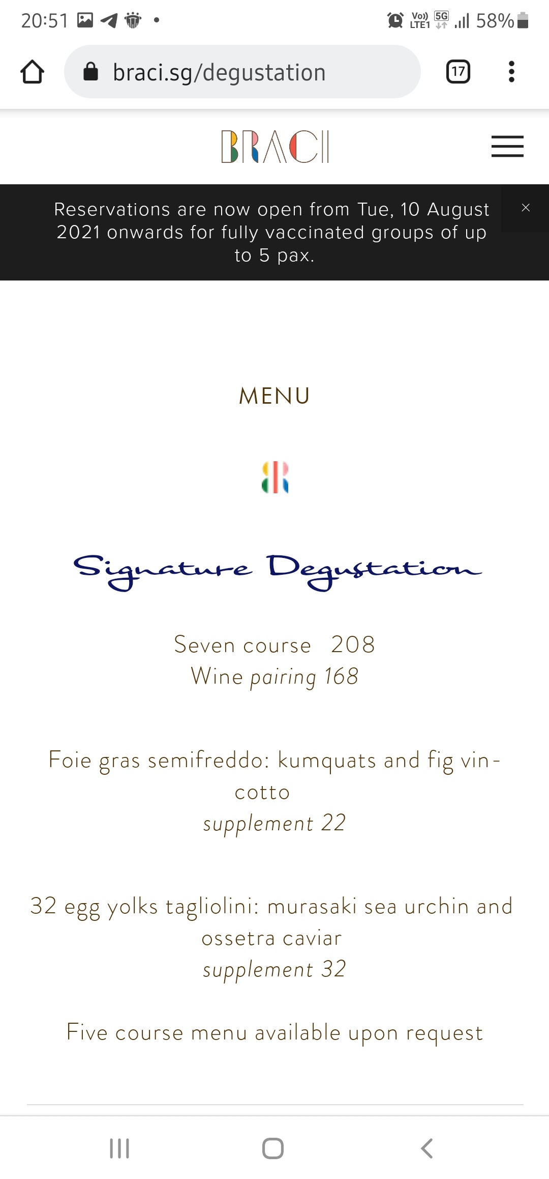 Not being able to travel for 2 years means I have not been able to indulge myself in Michelin worthy fine-dining restaurants. After hearing about Braci from my friend, we decided to splurge and book dinner but our reservations were changed at least twice due to the change in dining restrictions last year. When we finally got a confirmed reservation in Sep, we were pretty excited to make sure the dinner happened