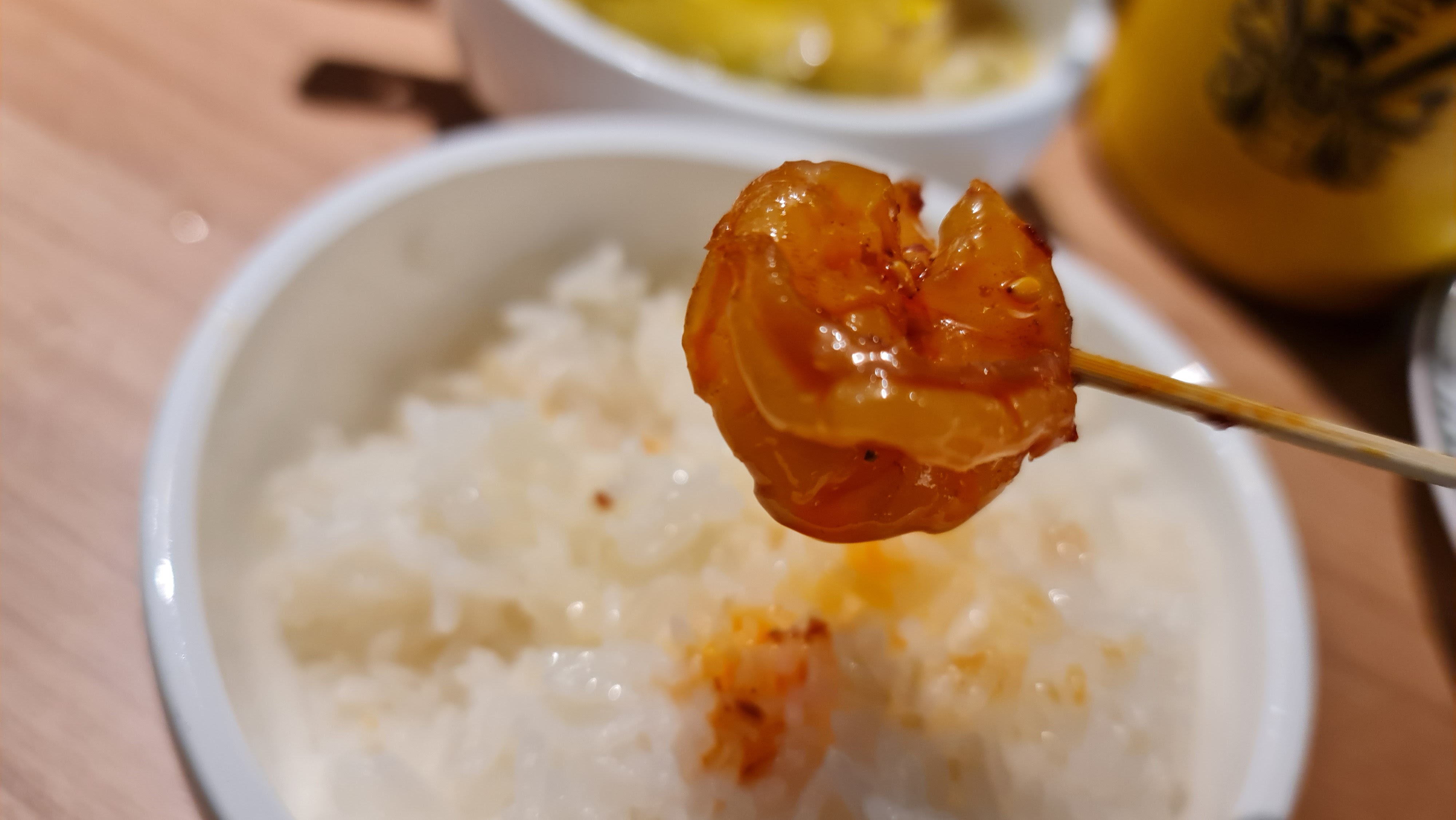 You can tell from the gloss on the prawn this dish is at a mid spicy level and a tad too spicy for me. The prawns were springy and crunchy despite the size