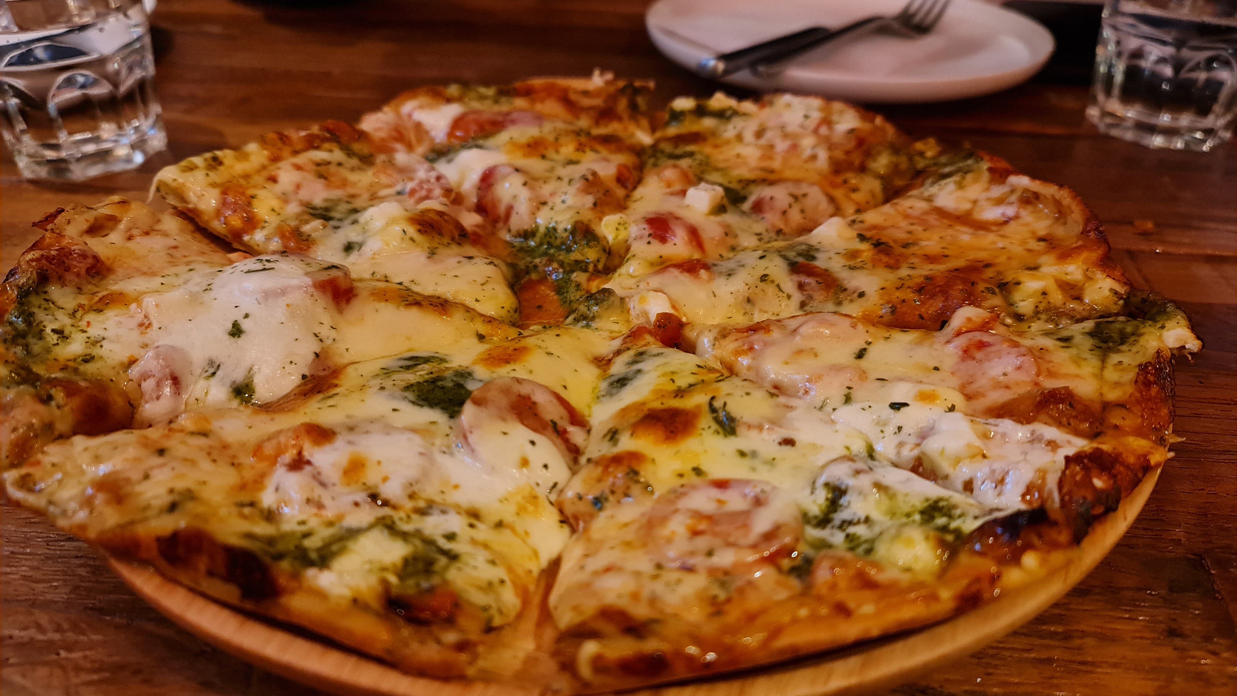 One of the popular options here is the mozzarella pizza which is topped with fresh mozzarella cheese, cheddar cheese, dried tomatoes and basil pesto. The pizza was thinly pulled and soft with a generous amount of toppings. Personally, I love mozzarella cheese, but I tasted a pretty strong cheese flavour that reminded me of blue cheese, one of the cheeses I do not like so this dish was not my favourite