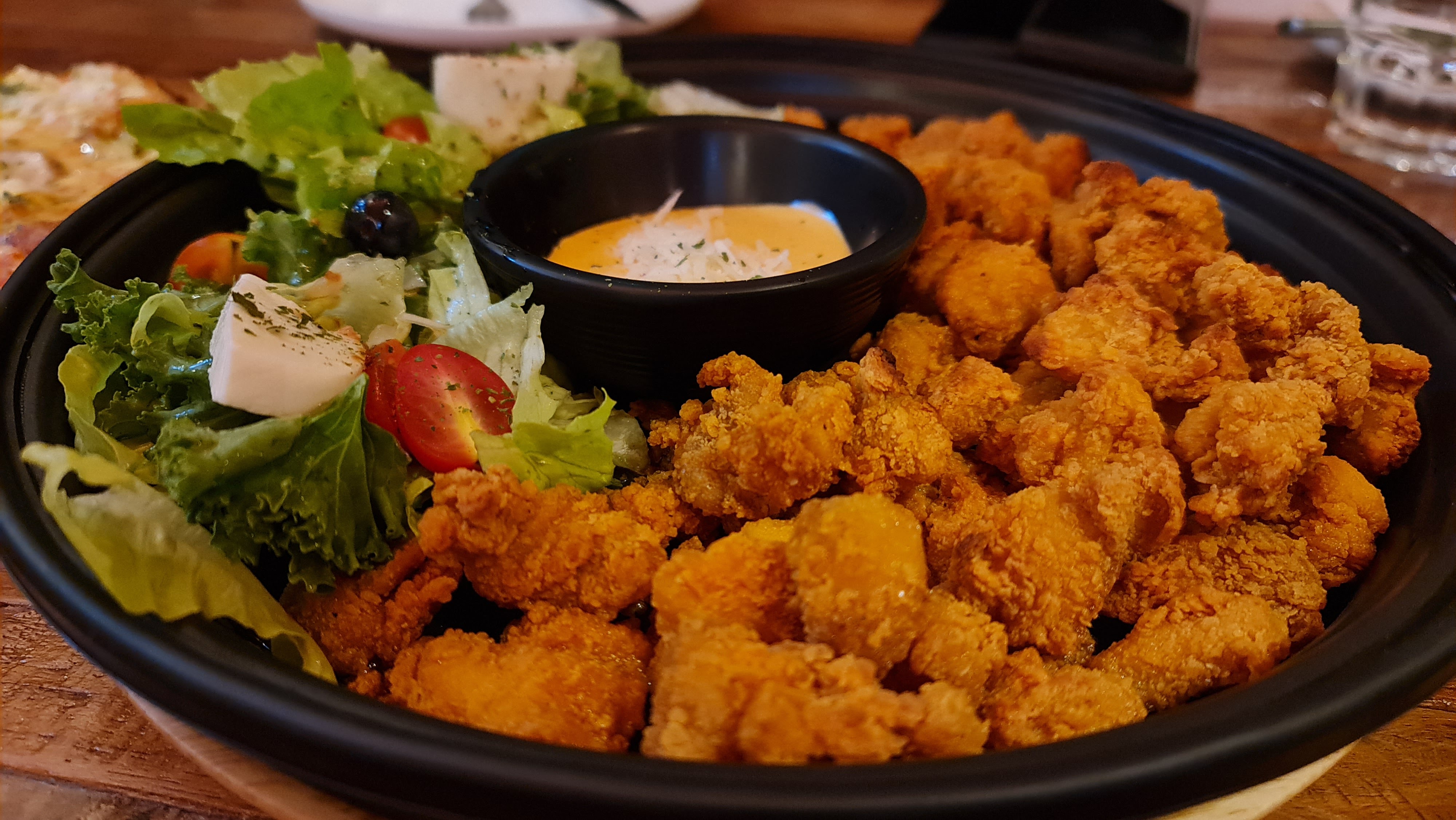 This next dish is perfect for sharing; crispy popcorn chicken served with spicy mayonnaise and a side of salad. There is not much to go wrong here as the chicken bites were fried to the perfect golden brown crispiness with the insides still tender and juicy. The spicy mayonnaise gave the popcorn chicken a slight kick matching the chicken well