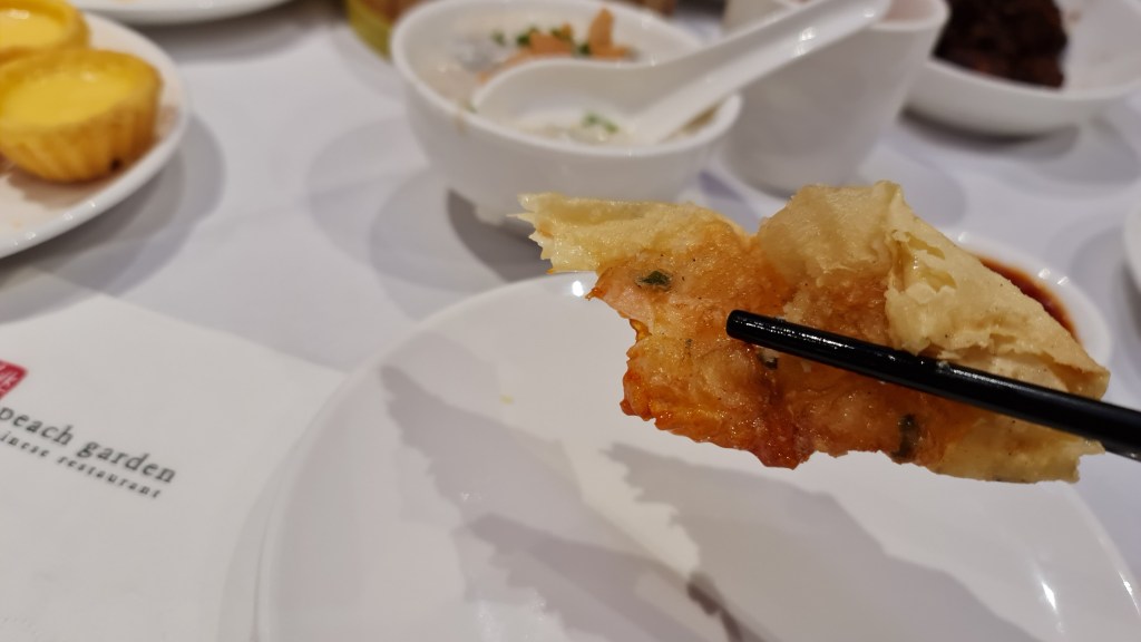 Other than steamed dim sum, they also had fried items served in a glass push cart. Some fried items included mini egg tarts, fried prawn dumplings, fried beancurd roll and fried sesame ball with pandan filling. Overall, the fried items were quite delicious as they were freshly fried and very crispy when placed on our table