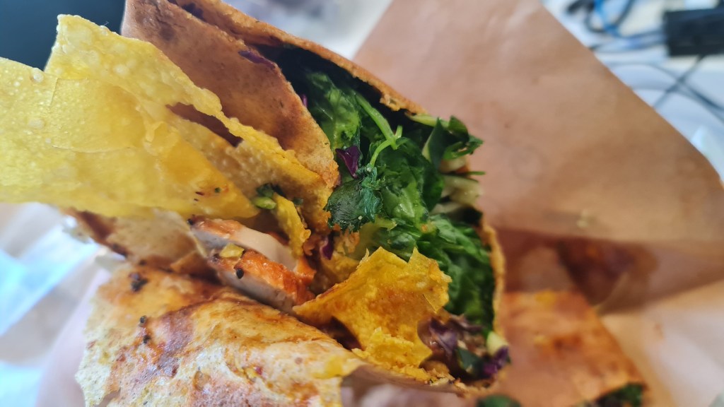 This is the condition of the Jian Bing an hour later where you can tell the crepe is soft and no longer crispy and this proves to be a problem as it is messy to bite into the Jian Bing with ingredients and sauce dripping out. You can see from the last picture it was a bit squishy to hold onto the Jian Bing once the crepe turns soft. Some plus point is that the crispy wanton was still slightly crispy and the vegetables were fresh and crunchy