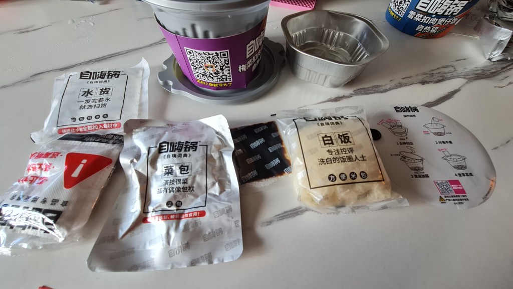 After my first experience with Self heating hot pot, I was concerned about trying out more self-heating items but during one of my shopping trips in Chinatown, I was attracted to these colourful and cute panda packages from Zi Hai Guo ( Loosely translated as self-happiness pot) and couldn’t help but purchased 2 to testing