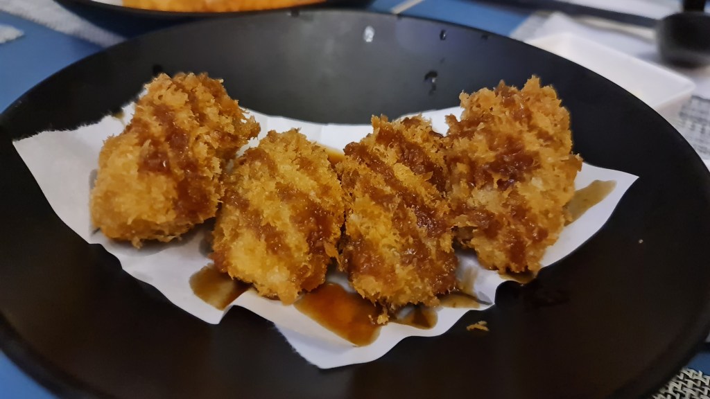The next item served was the kaki fry which is the fried oysters. Drizzled with a savoury tonkatsu-styled sauce, the oysters were pretty huge in size and juicy when you bite into them. The crispy coating was similar to the kind you find on Ebi fry and was perfectly fried till crisp and golden brown