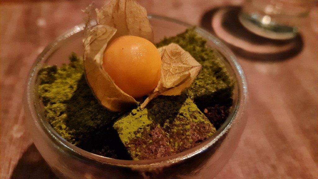 Finally, the last course was the dessert which is the smoke chocolate parfait served with chocolate soil and parsley and mint Sponge, brownie and gooseberry. I have to say that this is totally not suited to my tastebuds. The parsley and mint sponge were extremely weird with the brownie and the chocolate soil was too sweet. I had one mouth full and stopped eating it