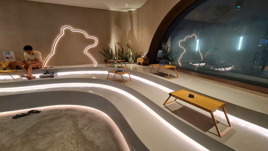 There is an amphitheatre area which is integrated with Samsung equipment like their projectors and sound systems. This space is available for private event bookings or for customers to chill with their drinks as there are small wooden tables for them to place their orders