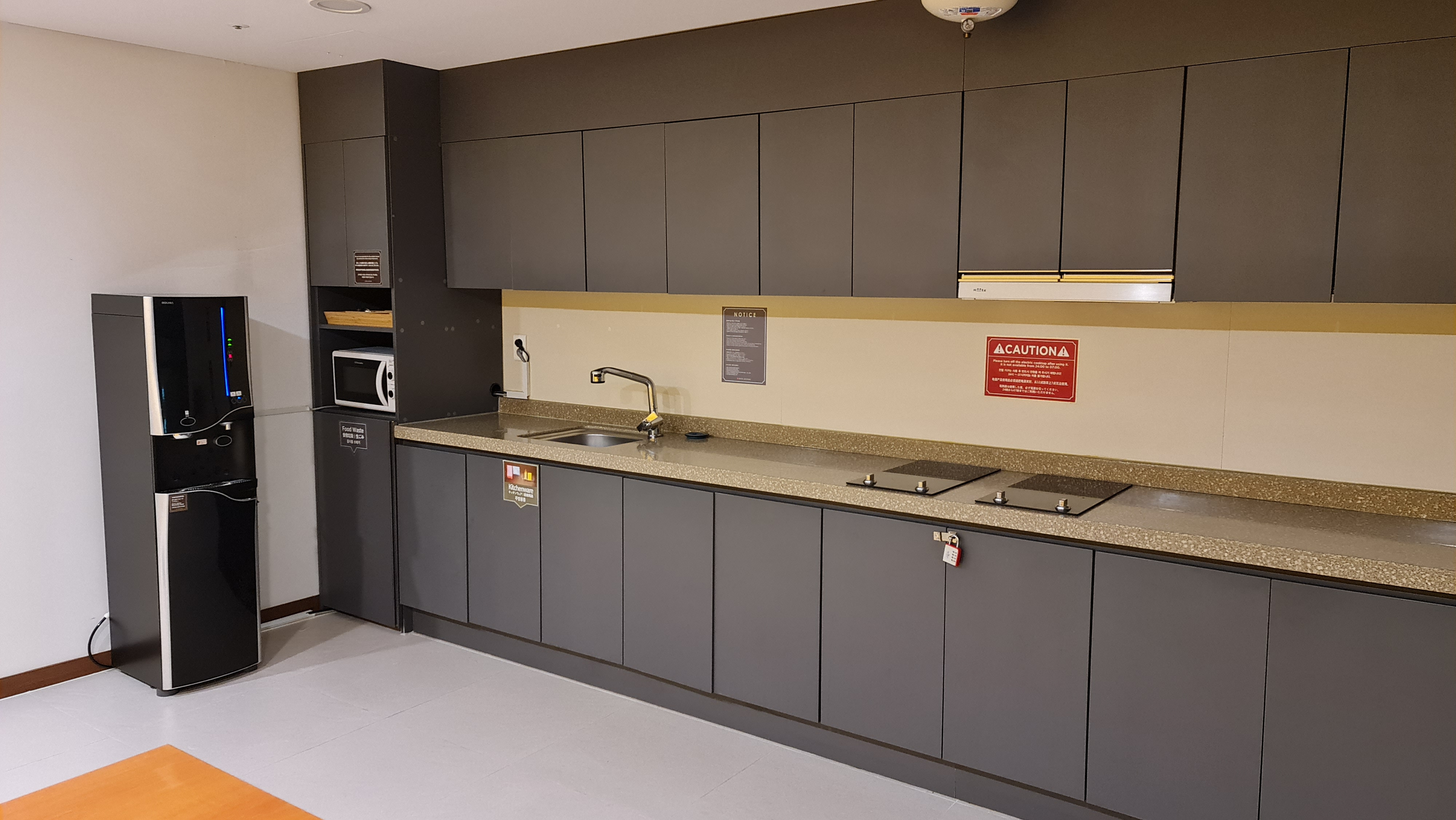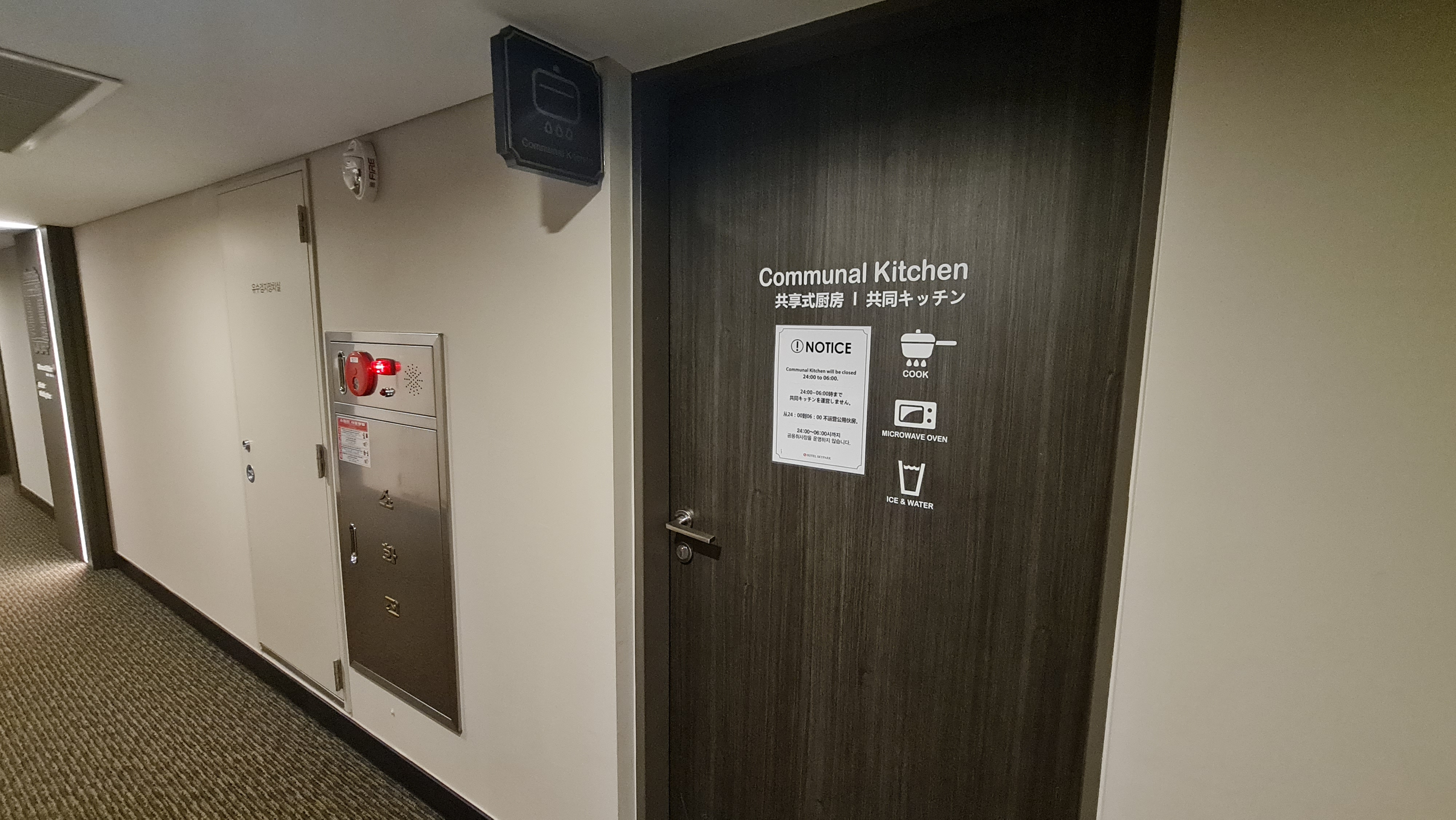 The corridors are very spacious for luggage of all sizes and are brightly lit at any time of the day. The timed air fresher is very fruity and sweet so coming back to the hotel after a long day is really nice and feels homely. There is also a communal kitchen available which is open from 6 am to 12 am. There is a small table for guests to eat as well as a stove and microwave for heating food. There are pots and pans and trash bags that you can use but no utensils so you will need to bring your own. There is also a water dispenser for both cold and hot water which helped me save quite a lot of money