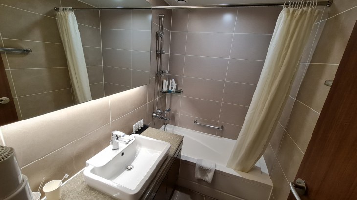For the bathrooms, the toilet is spilt from the main bathroom which comes with a bathtub and shower head with a full landscape mirror and hairdryer. The other room is where the toilet is located with a bidet and also a side-standing shower. As there are 3 of us, I really liked that we could shower at the same time when we come back to the hotel late. The only crunch time is when all of us need to use the toilet together but it is expected for a triple-sharing room