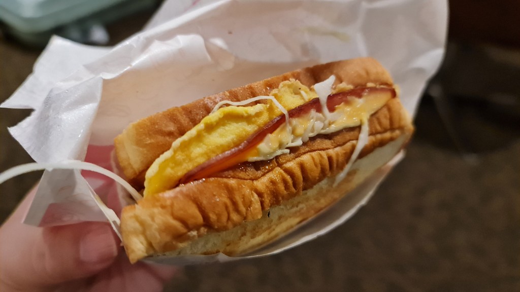 We ordered the ham and cheese which comes with 1 slice of ham and cheese, fried omelette egg and cabbage salad with Issac sauce and tomato sauce. Each sandwich is packed into a waxed paper envelope which is made for convenient munching while on the go. It is best to eat the sandwiches while they are freshly made and hot as the bread will have a nice buttery toasted flavour and the ingredients are warm and delicious. The cabbage is a perfect fit for the sandwich with a refreshing crunch and tangy flavour from the sauce. The sandwich is very well-balanced and not greasy at all. I had a sandwich packed and eaten about 1 hour later and it was all soggy and slightly greasy although the flavours were still good