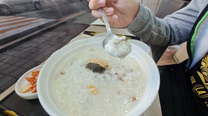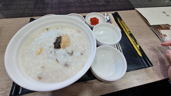 We took the table by the window and I really loved the view as you can have your porridge and kind of watch the people going by their daily lives since the Dongdaemun area is bustling with wholesale activities