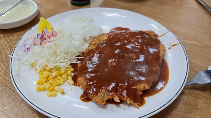 There are 2 different kinds of Tonkatsu, the plain one and the one with cheese. The tonkatsu is served with a small scoop of rice, cabbage coleslaw salad, corn niblets as well as a slide of pickled radish. The tonkatsu was huge in size and we ordered 2 plates for sharing; 1 regular and 1 with cheese. The tonkatsu was really well worth the calories and the visit since it is quite out of the way. The external coating was crispy but not oily and the meat was tender not overly dry. Some tonkatsu outside tend to be too thin and hard to bite but the thickness is just nice. The one with the cheese was moister compared to the regular and it was so good that we ordered an additional one after we were done with the first 2 plates. The only downside for the cheese one was it can be extremely filling as the cheese was creamy and buttery. The brown sauce on the tonkatsu itself was savoury and complimented both the regular and cheese version. I would say it is as good as the ones in Japan although the sauce is quite different
