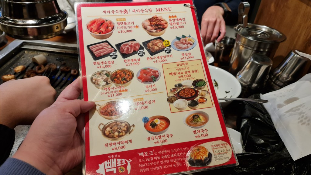 As seen here from the poster, this restaurant is owned by celebrity chef Baek Jong Won who also owns Paik’s coffee and Bornga restaurant; the more familiar brands for Singaporeans. While there are Bornga outlets in Seoul as well, the 2 barbeque restaurants reach out to different groups of customers as Saemaul Sikdang Dongdaemun has a more pocket-friendly menu focusing mostly on the barbeque while Bornga has more variety of items on their menu like different soup, stews and noodles
