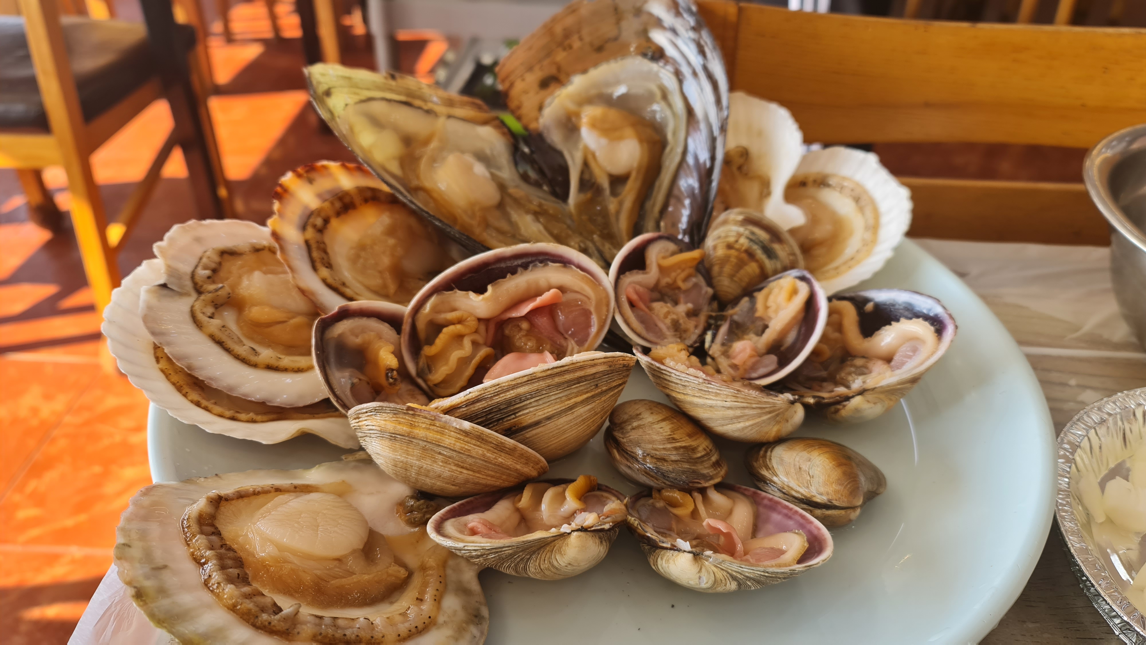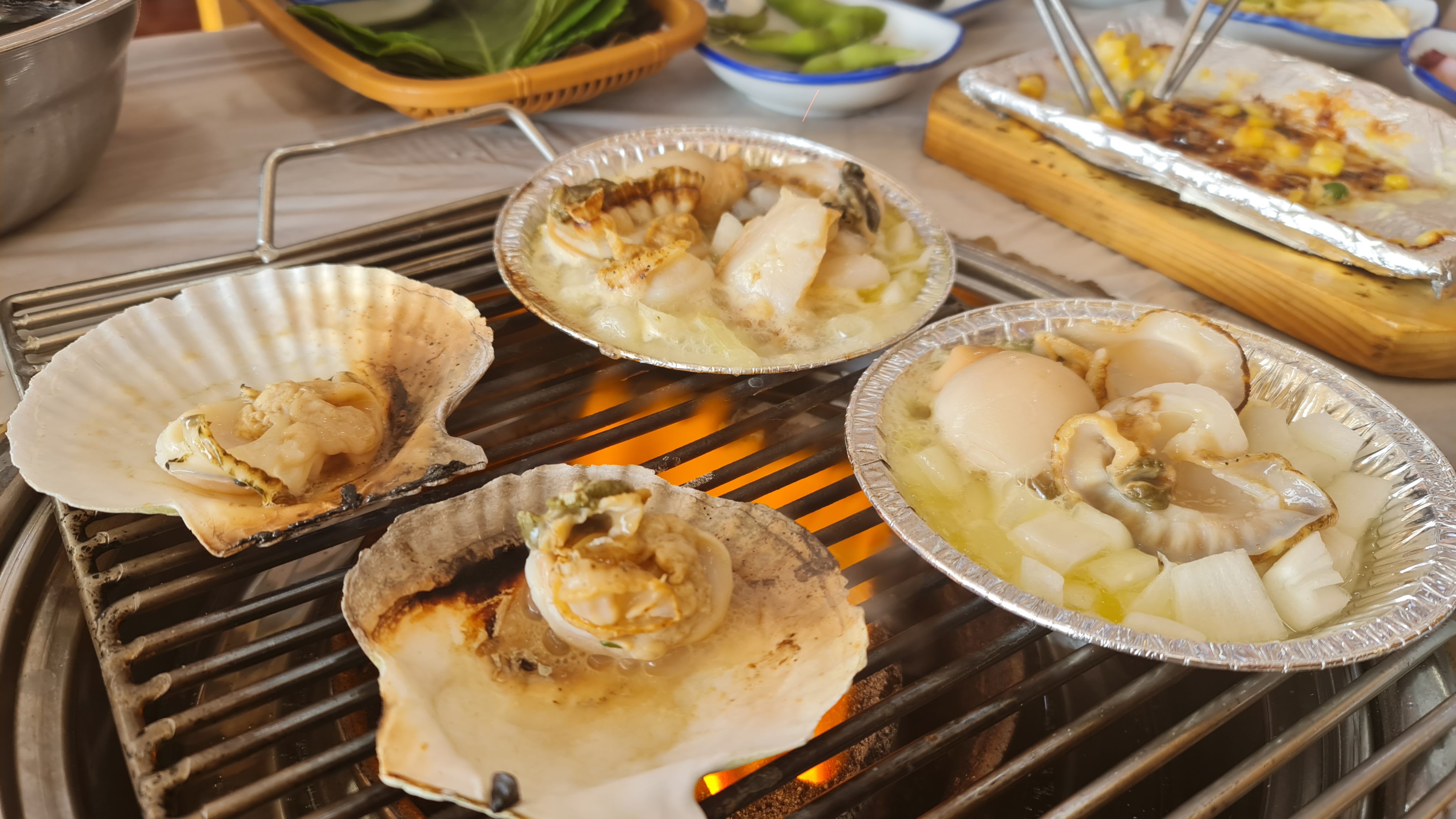 You can see the scallops popping as the staff grills them for us
