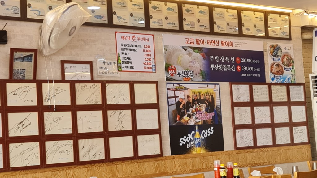 Overall, I am satisfied with the meal and the cost is quite reasonable at KRW130,000 for 3 of us. The amount of sashimi is also very generous. Although I have seen videos of other Heungdae beach restaurants serving grilled seafood, I think this restaurant is worth a visit based on the multiple celebrity signatures on the wall. I believe Running Man visited them as well. There are also reviews saying they are expensive and since I have not visited any sashimi restaurant in Korea, this price is still acceptable for me