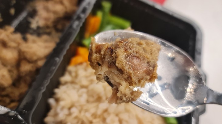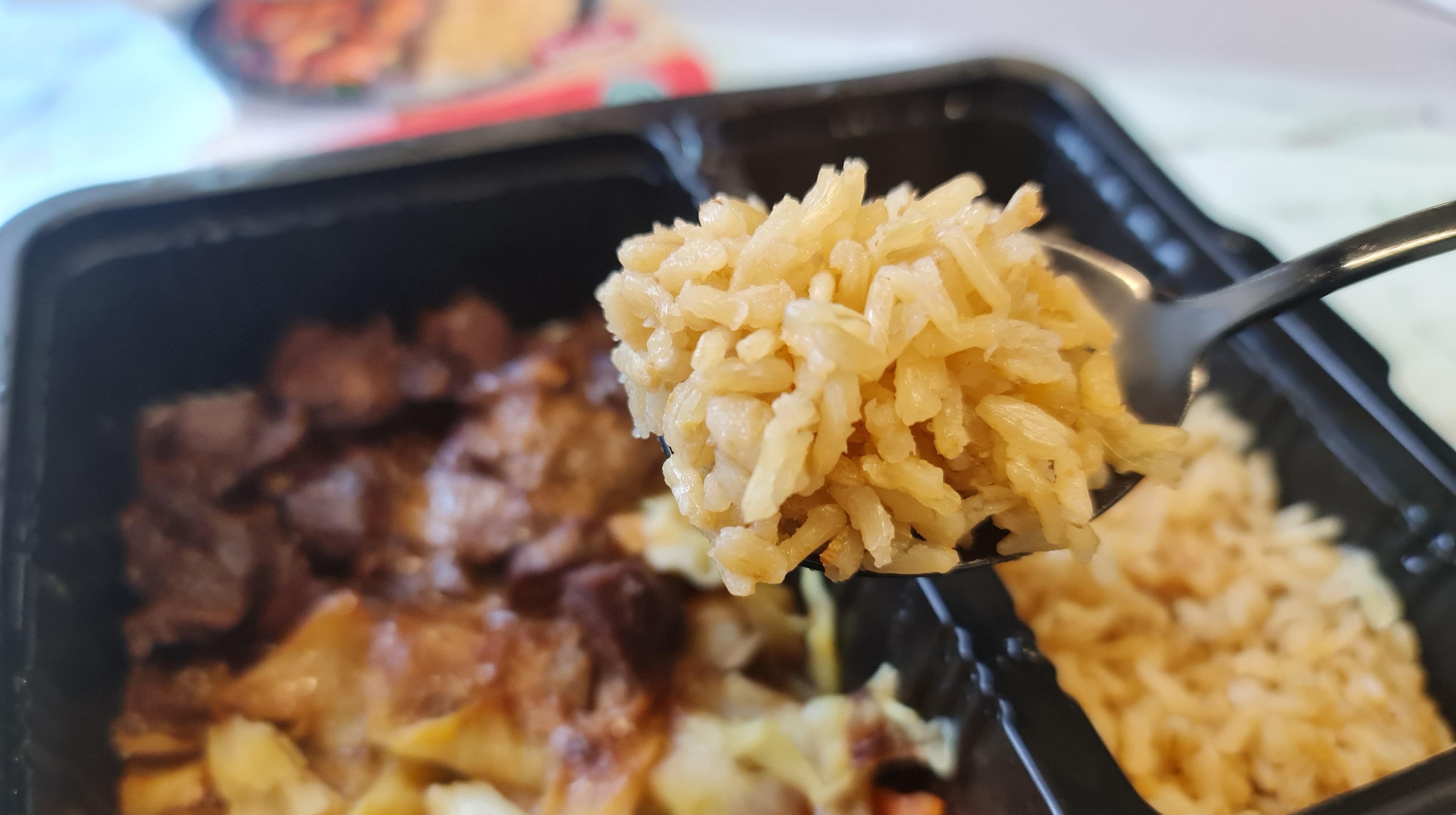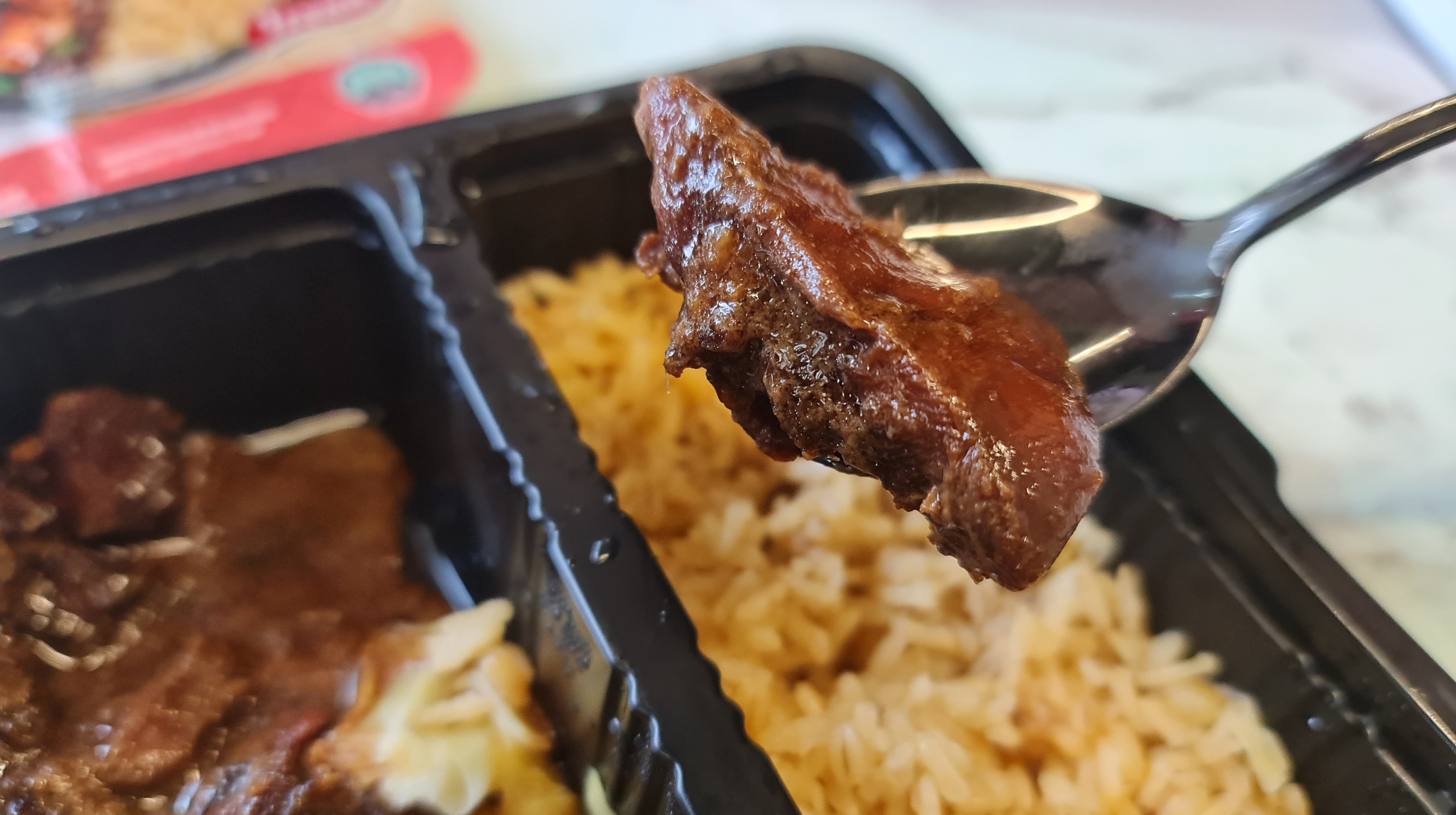 I was not that keen to buy this as lemongrass baked chicken really did not appeal to me but I still bought it to try out every flavour that is non-beef. The rice like the other meal packs; is a mix of rice and barley which is a healthy selection. The string beans were surprisingly soft and lightly salted which is pretty nice to eat with the rice. The chicken while not looking very appetising; actually taste ok with a tinge of lemony flavour. Like the rest of the packets, the meat was also slightly dry