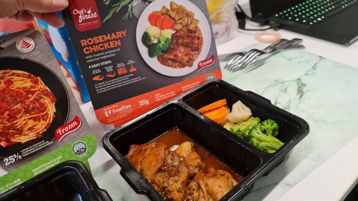 Last but not least is the Rosemary chicken which is the only meal costing above SGD 5. The size of the chicken thigh is decent and blanched broccoli and carrots are served on the side. Surprisingly, the thigh meat was tender and not dry like the other meals and the flavours are also quite decent. As there were no carbohydrates provided, this meal is not as filling as the rest even though it has the best flavour so far and the texture of the meat was most unlike a frozen meal