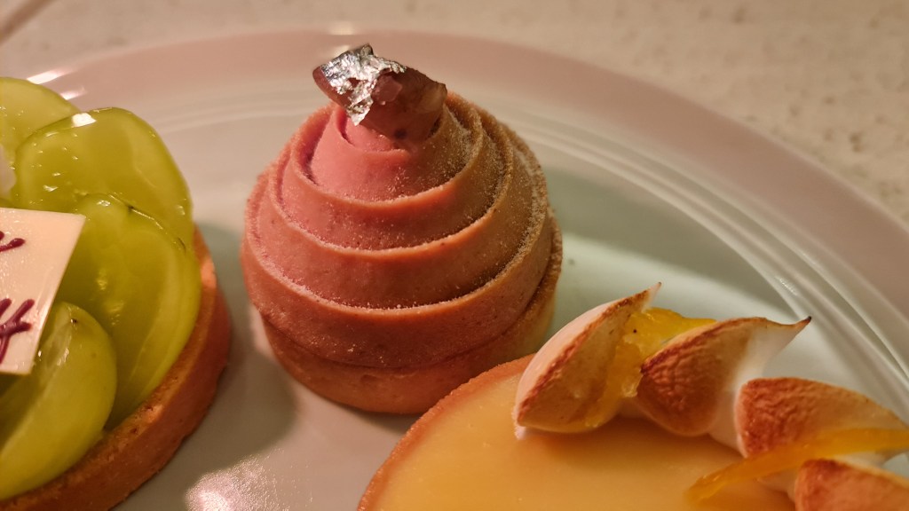 The Shine Muscat tart uses Korean shine muscat grapes with Yuja cream and the tart shell is buttery with a crunchy bite. The grapes are juicy and crunchy but not as sweet as I imagined so the flavours of the Yuja cream overtook the grapes. I didn’t really like the chestnut one as much so I don’t recall much of its taste