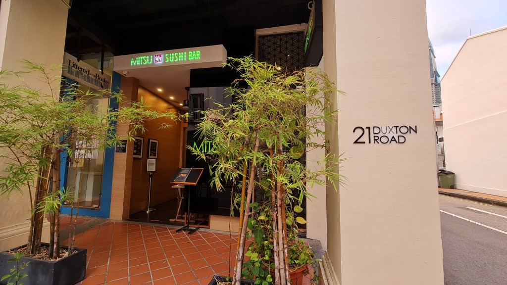 Located along a cluster of gourmet restaurants at Duxton Road, Mitsu Sushi Bar is at the cross junction between Duxton Road and Duxton Hill, occupying the corner shop