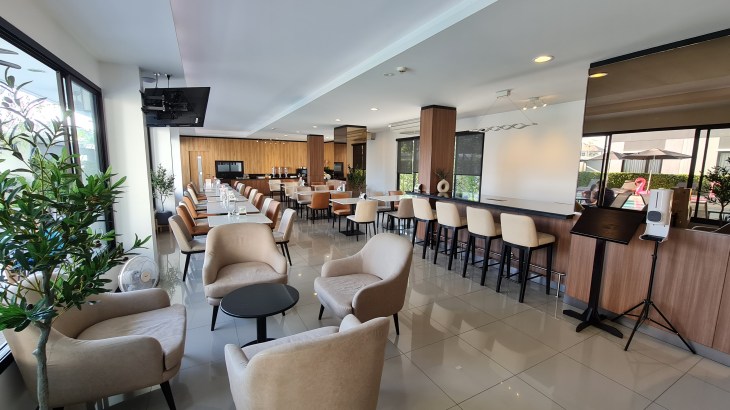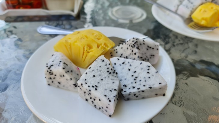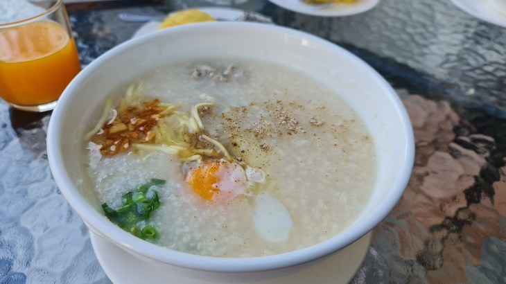 Our room rate did not include breakfast so we decided to get their a la carte breakfast available at the cafe which is just next to the swimming pool. The breakfast cost THB 250 per person and comes as a set. There are 3 versions available; the English continental with a fried egg and sausages and toast, the Asian version which is fried rice with a fried egg and also the Thai version which is pork ball porridge. Each set comes with a plate of fresh fruits and the buffet which is a self-help bar serving milk, juices, cereals and bread. Taste-wise, the food is pretty general and provides a nice start for the day. I really liked having breakfast right next to the pool which is very quiet in the morning