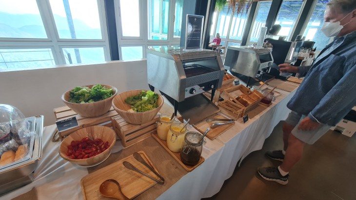 Breakfast was included in the room price and is quite a good spread. Located on the 2nd floor of the restaurant building, there is a selection of both hot and cold dishes. For hot dishes, they have Chinese dim sum and porridge, Thai pork porridge, fried rice and fried vegetables, sausages and egg stations. There is also a toast station and a make-your-own salad area. There is a small selection of juice, hot beverages and fresh fruits available as well