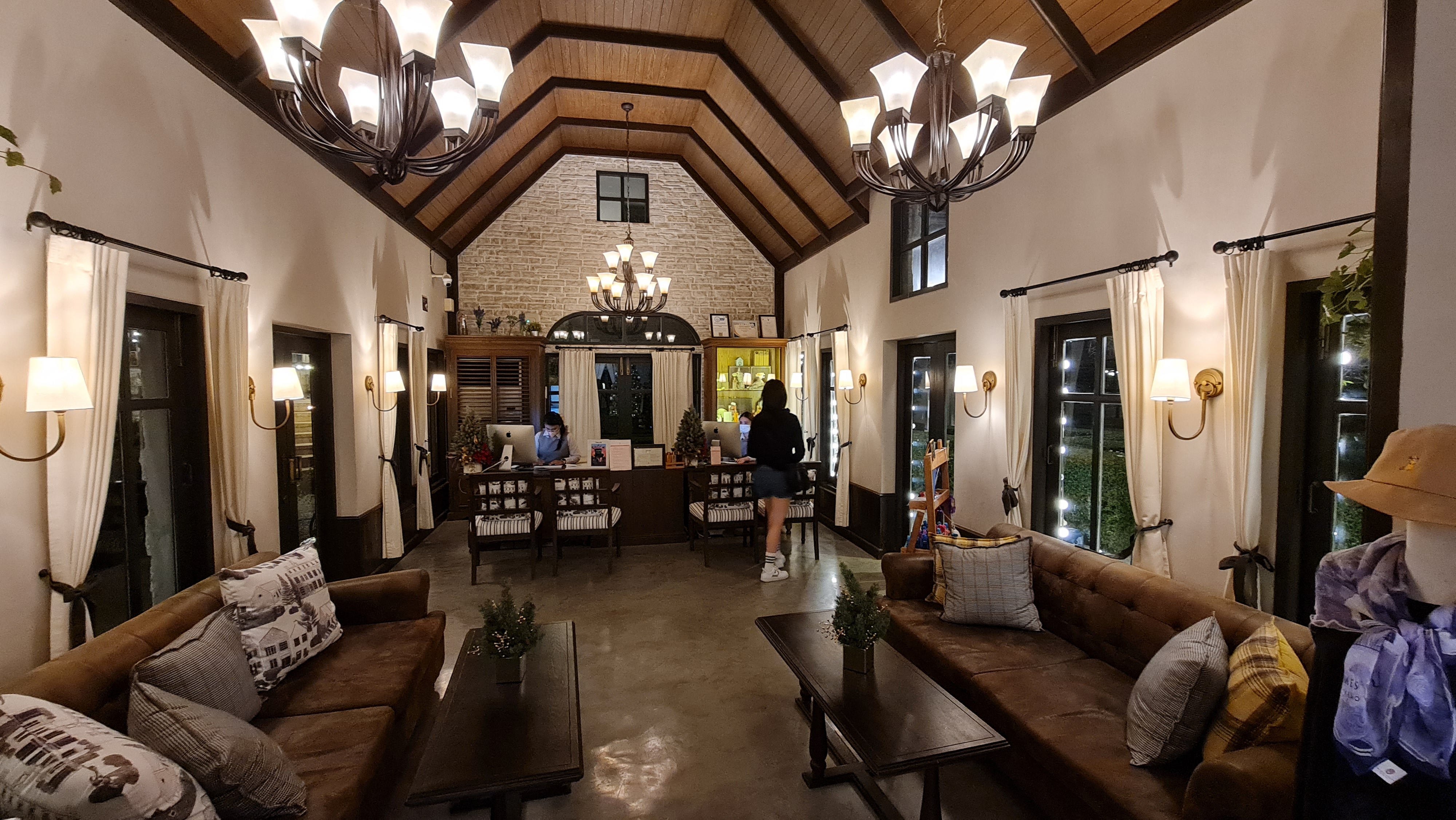 As we arrived back in Khao Yai in the evening, it was dark and the entire compound was lit up beautifully. The main carpark area from the right of the entrance was The Castle Restaurant while towards the left was the carpark for the hotel. The check-in was located inside the tiny cottage house with its own cosy courtyard garden and pond. The lobby was very spacious with the main area where the check-in counters were located and also a side room which was decorated like a cosy living room complete with a fireplace and Christmas tree