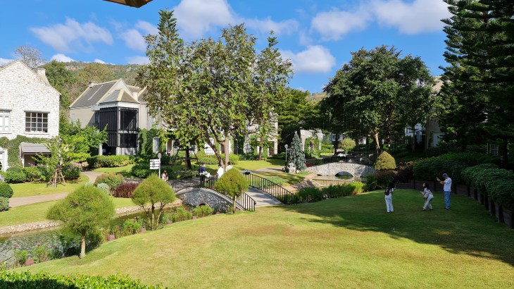 We managed to get a good look around the compound the next morning and the entire space was just gorgeous. The replica of the stone brick buildings in terms of colour and architectural design is 100% alike to those in the small English villages. It was extremely serene and calming to take a stroll along the small man-made river that flows through the resort and chill out at the various garden benches scattered throughout the area. The luscious greenery, river and stone houses form a picturesque image against the bright blue skies filled with clouds and I really wished I stay here for at least a couple of nights as a retreat