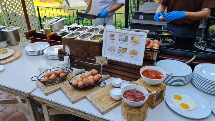 The varieties offered at their breakfast were extensive as they had 2 outdoor live stations serving freshly made pancakes, eggs and Thai-styled soup noodles. The rest of the buffet line is located indoors within the restaurant so most of the outdoor area was kept as a seating area for guests to enjoy eating outdoors with the picturesque backdrop