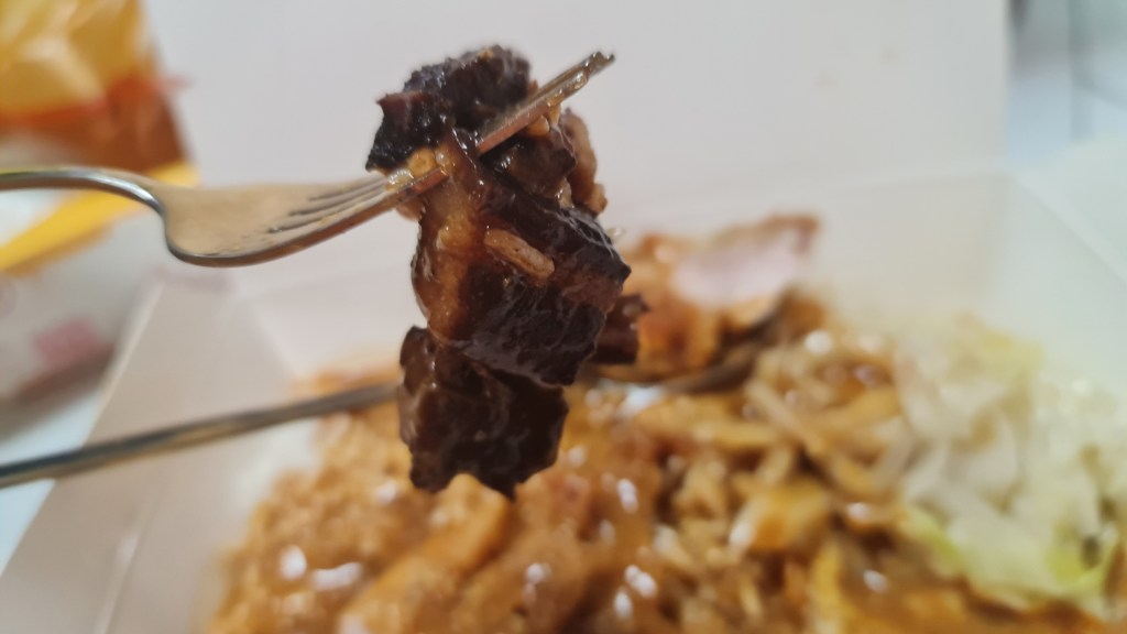 I have not eaten at the store but have bought takeaways quite often. The meals come packed in these environmentally friendly paper boxes and you can inform the staff to pack the gravy separately so the rice and cutlet do not get soggy when you reach home. The sets are priced at SGD 5.80 and include vegetables, fried eggs and a choice of meat. Personally, I do feel that the servings are quite small for the price but the quality and taste of the food is considerably good and the gravy really does complete the meal. The braised meat is very thorough in flavour as you can taste the soy flavour and the meat is soft to the bite while the cutlets are crispy and still juicy. The curry is creamy and smooth with a nice coconutty flavour backing up the spice of the curry to make it the perfect gravy for the meal