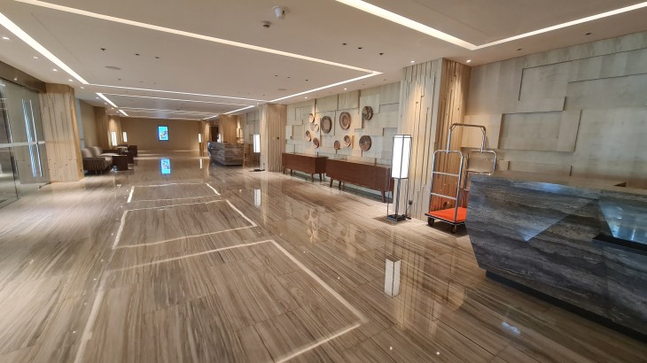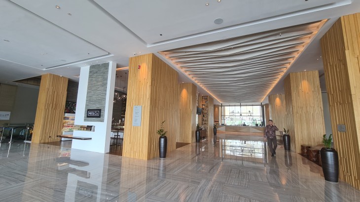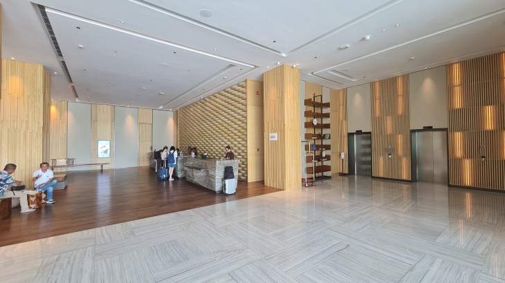 From the mall, you will arrive at the basement lobby of the hotel which has lovely sofas for guests to rest and also ample space for large groups of guests to load and unload their luggage as this level is linked to their carpark which has limited lots. The check-in counters are located on the 2nd level of the hotel which is extremely spacious. The check-in service was prompt and helpful and offered us early check-in and a welcome drink. Opposite the check-in counter was a small cafe selling bake and chocolate. As we travelled around using Grab, it will be helpful to let the drivers know that they have to pick you up at the slope and not at the carpark level which is street level