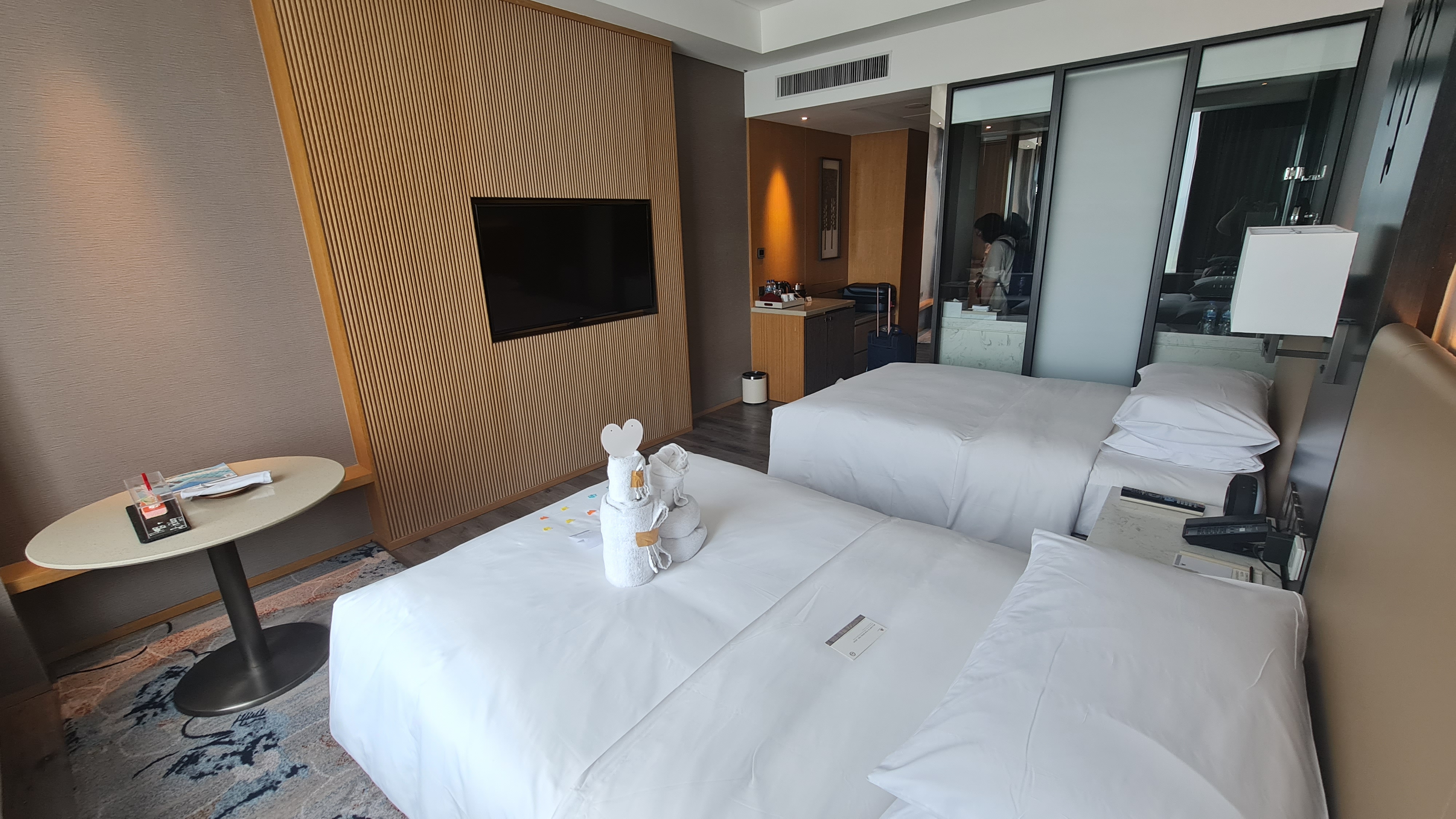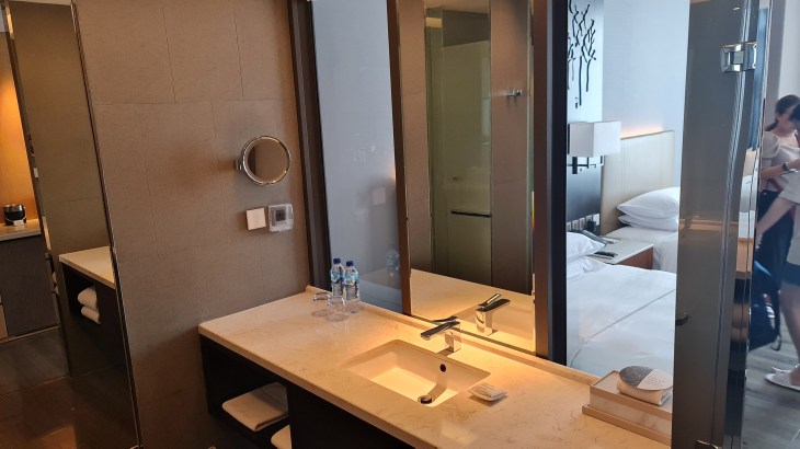 As expected of a Marriott hotel, there were many facilities available like the gym which had quite a complete range of machines and high-tech treadmills and cycling machines with individual screens for Netflix or news. The gym had many bottles of drinking water provided as well as a changing room and towels. At the same level as the gym was the swimming pool which is not huge but enough for casual dipping and lounging.