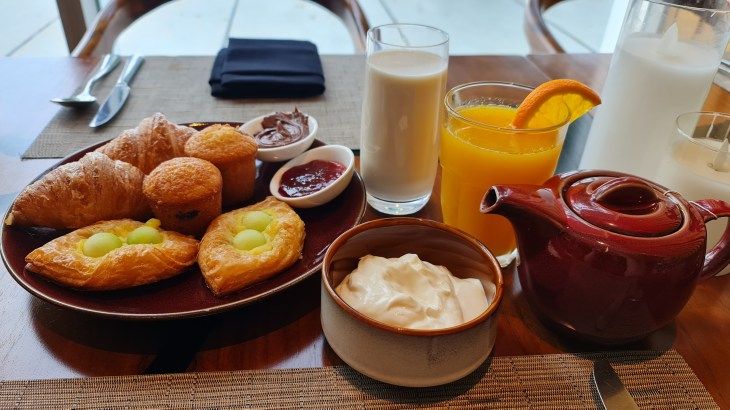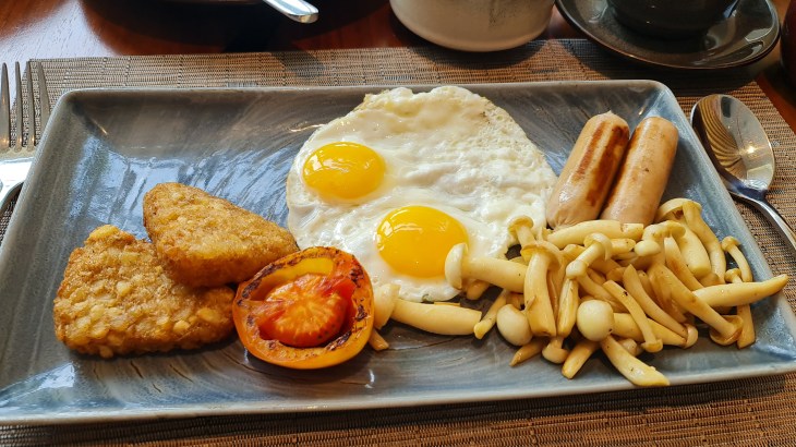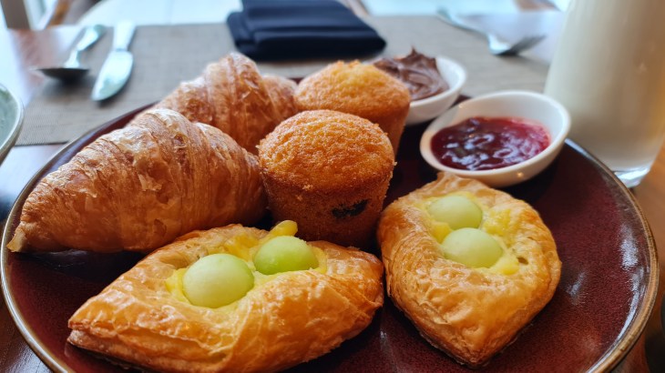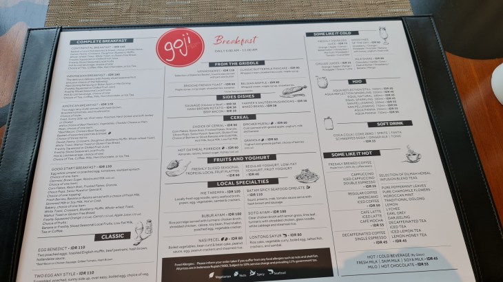 I chose the American breakfast at IDR 170,000 which is about SGD 15 and it was sumptuous and way beyond the amount of food I could stomach in the morning. The breakfast came with tea or coffee, juice, milk, yoghurt, a platter of pastries which included muffins, croissants and Danish pastries and a platter of fresh fruits. The side were served from the buffet line and staff were actually coming around to serve us more food from the buffet but I could not even finish the food on the table. The food was good although some of the items were slightly cold. I generally had no complaints at all with the food quality or value for money