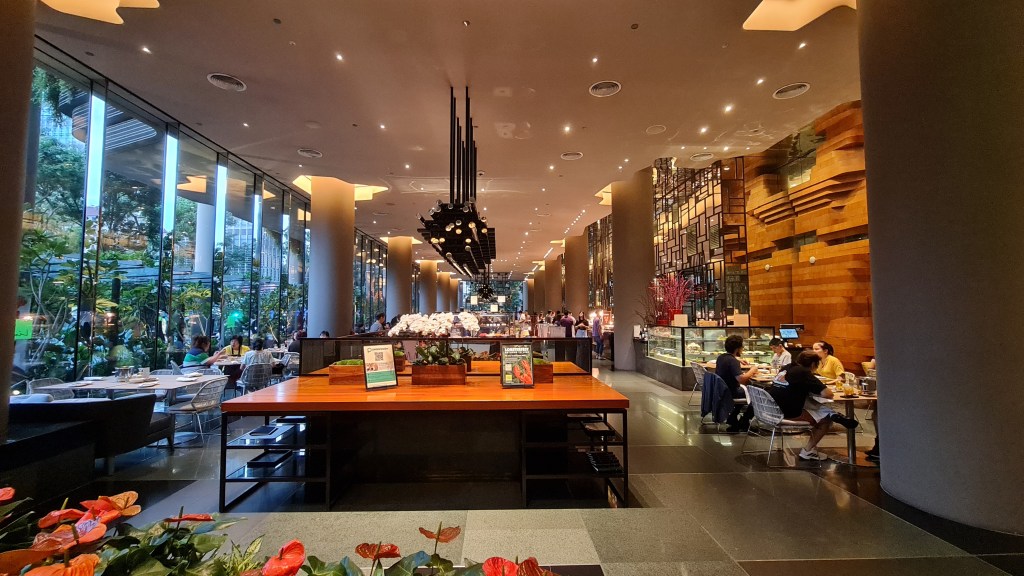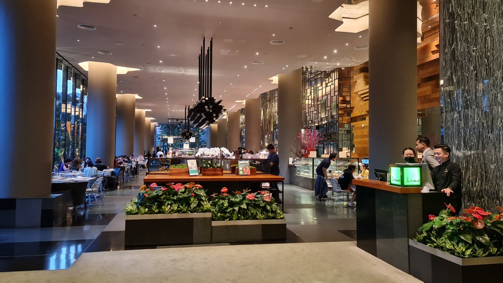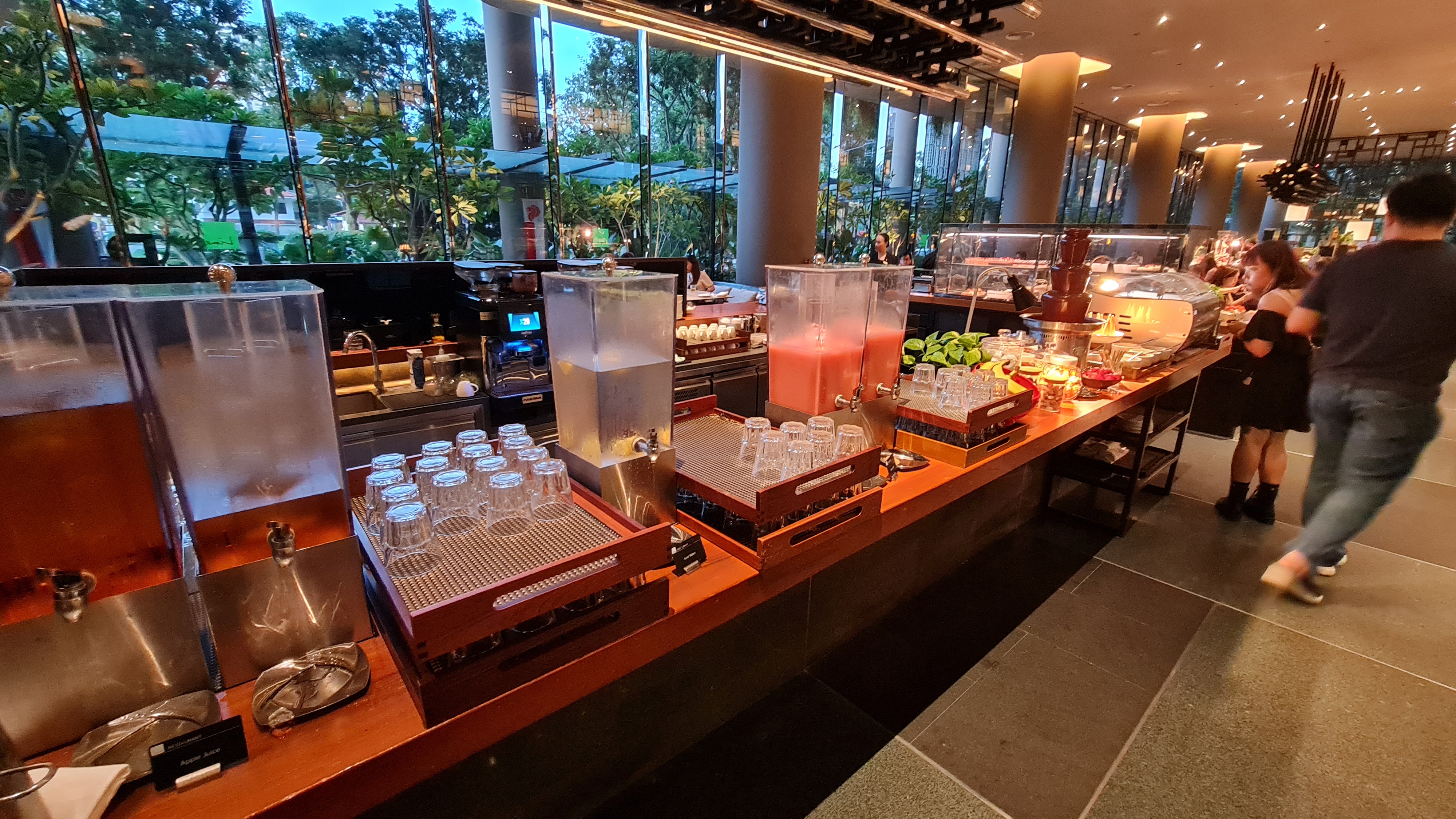 The restaurant is located in the lobby of the hotel and is spacious with each food station in different areas to break up the crowd. Table seating for dining is wide and spacious for customers although the ones next to the ceiling-to-floor windows come with sofa seats which are slightly too low for proper meals so if you have a preference for seating, do mention it to the staff