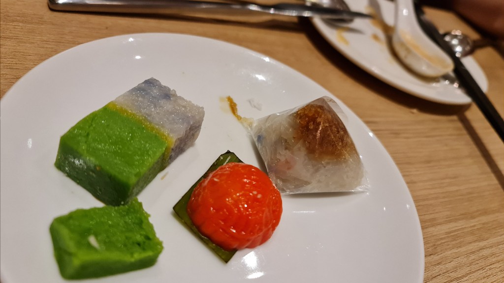 I lost count of the number of lobsters I had during the meal but it would have made my money worth and I totally did not take any other dishes other than lobster like the roast meats and Hainanese chicken rice. Instead, I took some crackers to eat with hummus and guacamole which is some of my favourite foods and also helped break my appetite from too much lobster. The desserts were generally ok although we did not have much stomach space left for them