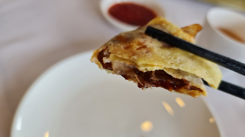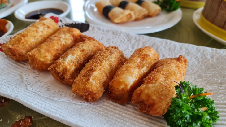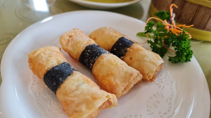 The next batch of items arrives slightly later and we have the chilli vinaigrette dumplings, prawn and char siew rice rolls, fried prawn spring rolls, fried yam and meat dumplings and fried prawn and banana rolls. The fried items were all decent and delicious but the chilli vinaigrette dumplings were a letdown as you can hardly taste the spicy sour sauce as the soy flavour overtook the main vinegar sauce