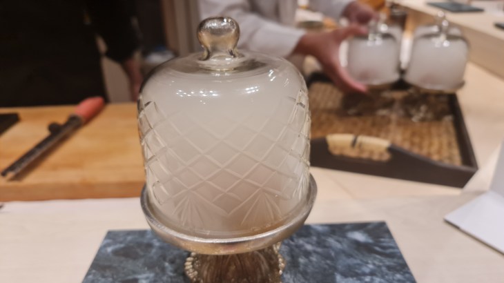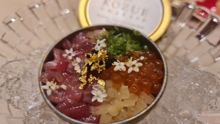 Towards the end of the course, we were served Ponzu Dashi soup which is made using a siphon coffee maker, Kozue mixed tuna Bakudan seaweed wrap and chawanmushi with tempura prawn. By this moment, we were surprisingly full even though each course was small but eating at an omakase actually encourages you to slow down and bite your food and enjoy the flavours while watching the Chef beautifully plate the next dish. Till the last course, every dish’s flavours were on point and delicious and the presentation brings the enjoyment up a notch
