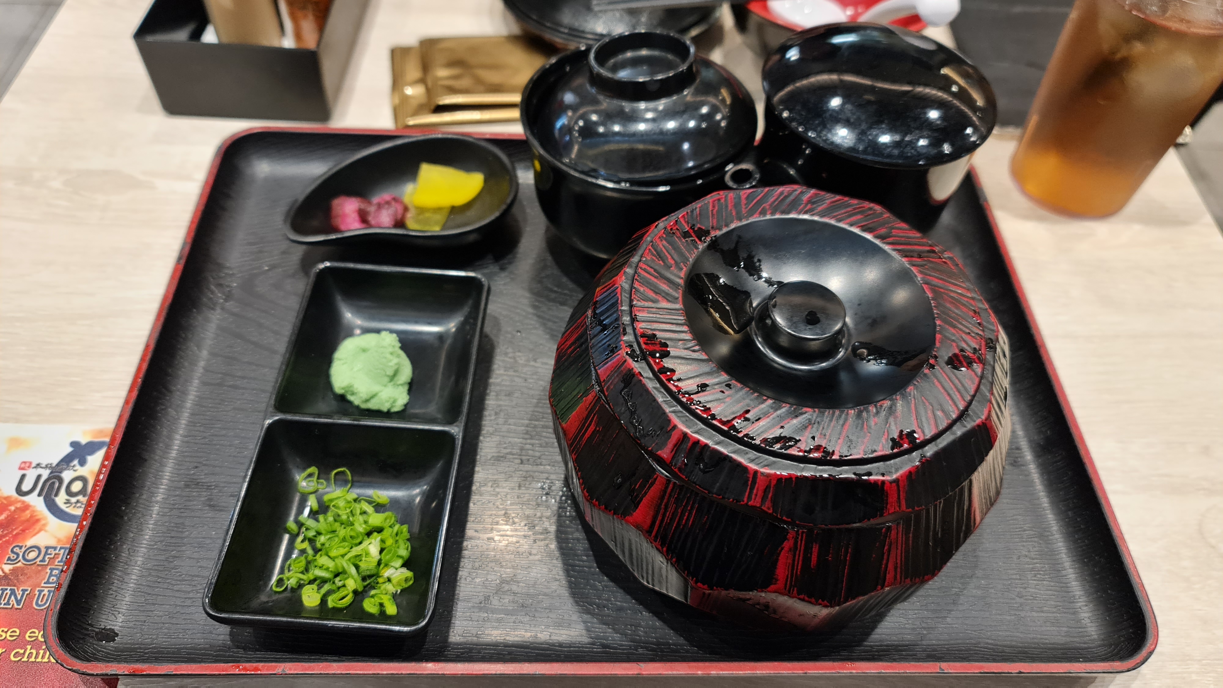 A Nagoya speciality cuisine, Hitsumabushi is different from the usual unadon as the eel in Hitsumabushi is sliced up finely and served with wasabi, chopped seaweed, chopped green onions, and tea. The eel in Hitsumabushi is also grilled till crispy so there is a nice charred flavour in the eel in contrast to the softer eel served in a Unadon