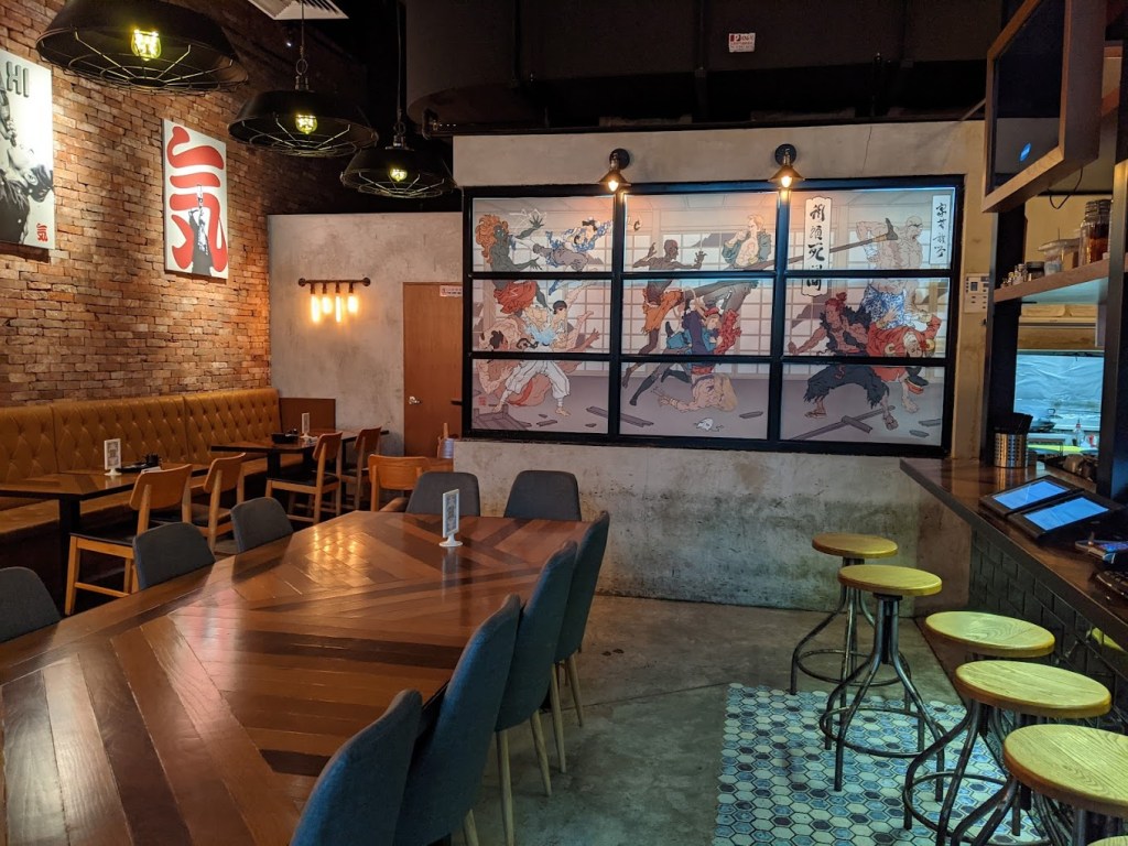 The interior of the restaurant is modern and contemporary with warm lights which help diners to feel relaxed. There is also modern Japanese art decorating the walls to give off the Japan vibes