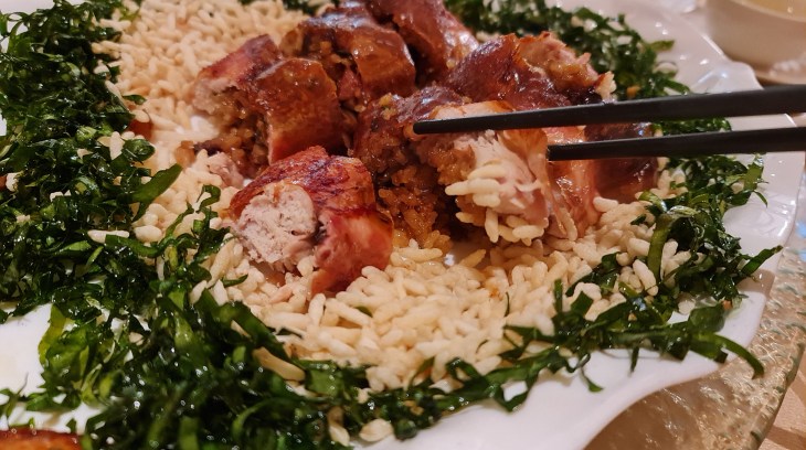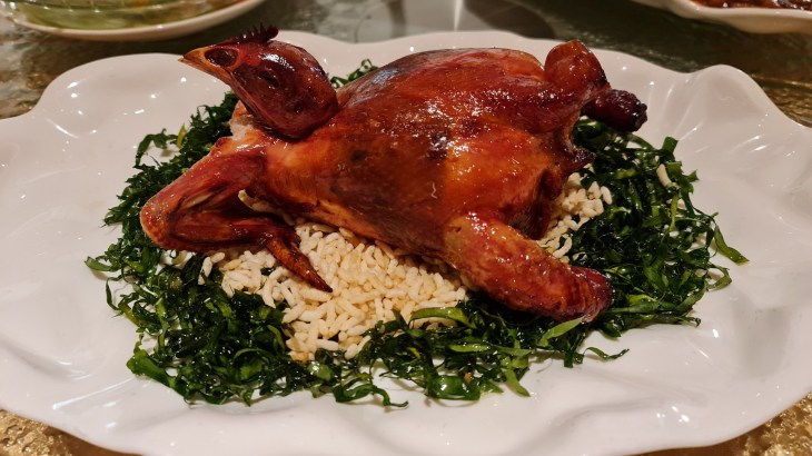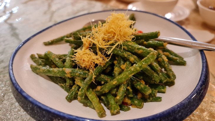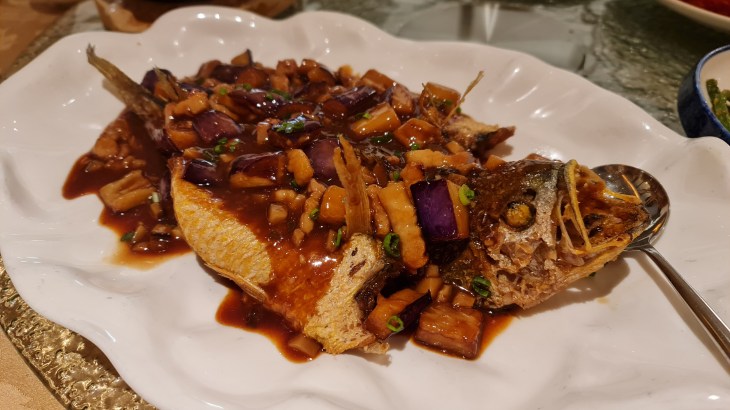 We originally wanted to order the Peking duck but were recommended by the staff to try their famous deep-fried boneless spring chicken filled with glutinous rice so we ordered that with sautéed French bean with salted egg yolk as well as the deep-fried fish with eggplant and meat sauce. The French beans were cooked perfectly with a nice crunch and coated well with the savoury salted egg sauce while the deep fish dish tasted very much like an eggplant minced pork dish. The chicken was slightly dry and nothing extraordinary except for the fried seaweed and glutinous rice which the children loved to eat