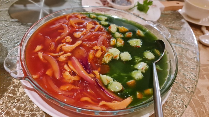 For our carbs, we ordered silky lean meat porridge, bamboo noodles with beef, plain bamboo noodles with pork lard and the yin yang fried rice with chicken and prawn served with tomato sauce and spinach sauce. The porridge was great as it was smooth and silky and perfect for the elderly and children while the bamboo noodles were really quite the star of the meal. I had the pork lard version which was perfect for the noodles with a balanced portion of oil and dark sauce seasoning while my sister had the beef which was very tender and soft according to her since I do not take beef. The last dish which is the yin-yang rice was pretty to look at but nothing too special to eat as the tomato sauce was not flavourful enough and the spinach sauce was lacklustre. When combined, it felt like a mixed dish of risotto poorly executed