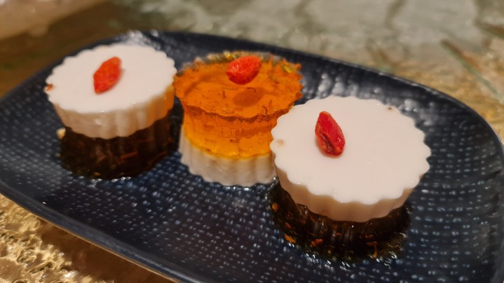 For desserts, we had the chilled wolfberry osmanthus layer jelly with coconut and crispy red bean pancake with sesame. Both were well executed and very tasty as a nice ending to a meal. The sweetness of the desserts was balanced without being too sweet