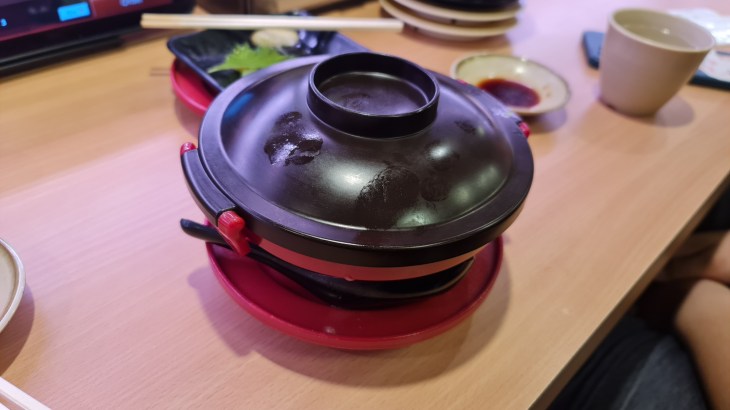 Last but not least, I was attracted by the customers next to me who were having these cute bowls of noodles. The noodles were placed in this plastic bowl which looks like an earthen claypot. To prevent the soup from spilling while getting transported on the conveyor belt, there are buckets at the side of the bowl to hold the cover in place. The size of the ramen was decent for one person and can be filling for small eaters. Each bowl comes with an egg and a piece of char siew and while the noodles look plain, it was surprisingly nice and comforting. While the quality of the ramen is below those specialised ramen stalls, I would say they fare much higher than most foodcourts and hawker stalls and I would not mind returning for it
