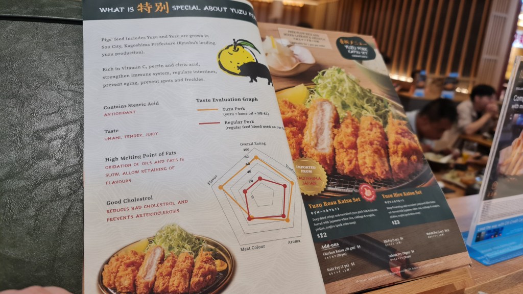 With 4 outlets, Tonkatsu Enbiton is the first tonkatsu restaurant in Singapore to serve a unique yuzu pork tonkatsu. Sourced and imported from the farms in Kagoshima, Japan, yuzu pork is from pigs fed with yuzu, resulting in a juicy and succulent texture, with a mouthfeel that is less greasy. There is supposed to be increased nutritional value in the pork, with higher amounts of Vitamin C, and fat with a higher melting point—resulting in extra juicy, flavourful meat. Other signature dishes include the A4/A5 Miyazaki Gyukatsu, served with teppan grill, black curry, and ramen