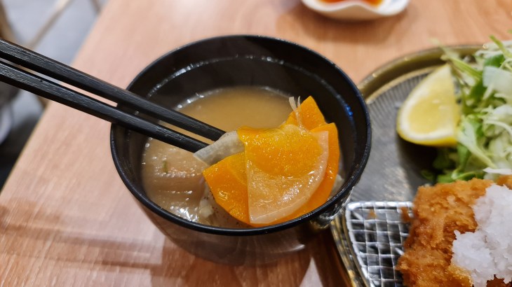 My tonkatsu set came with white rice and a Tonjiru which is pork miso soup. I selected the rosa cut of the pork which is the fattier portion and chose the Oroshi set where the katsu is topped with grated daikon and served with a yuzu ponzu sauce. I tried the tonkatsu with and without the grated daikon and they sure made a difference. Without the daikon, the tonkatsu was a perfectly coated and fried piece with succulent pork juices colliding in your mouth. As the pork loin was a fattier cut, pairing it with the daikon cut away the grease in your mouth and gave it a refreshing balance. I do like it paired with the daikon and dipped in the yuzu ponzu sauce as it made the cutlet less heavy on the stomach
