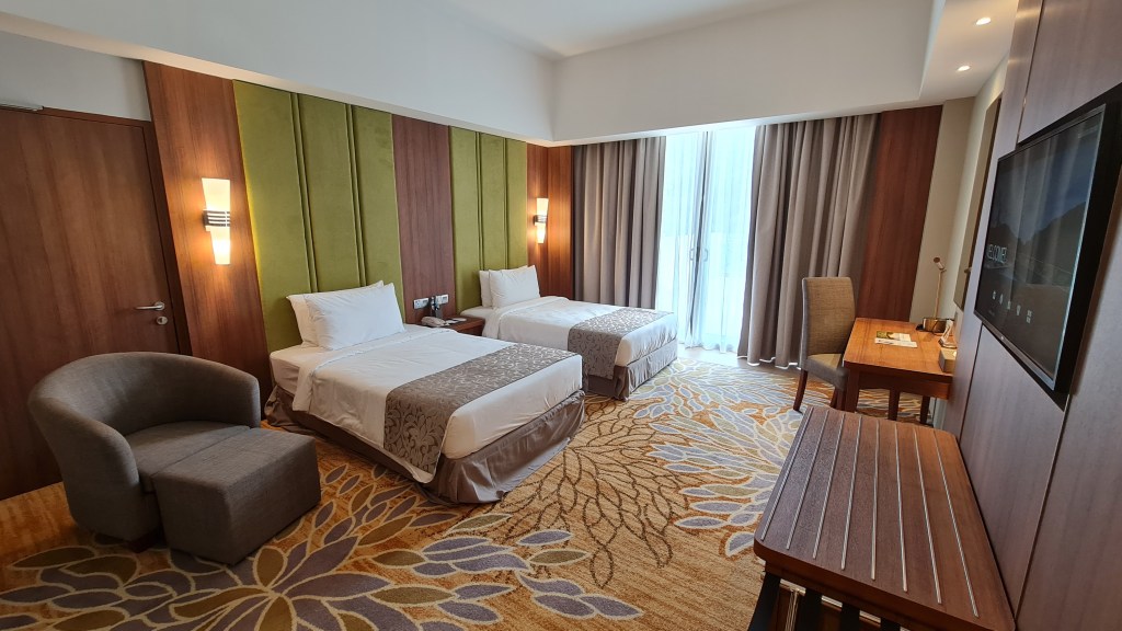 The hotel was perched on a small hilltop with a grand drop-off area. The lobby is spacious, brightly lit and well-maintained. You can tell that the hotel is fairly new as the lift lobby and common areas have a shiny new finish. The check-in process was quick and it took at most 10 minutes to check in 2 rooms. There was a small counter where you could get a welcome drink while you waited for service. We also got the staff to deliver our luggage directly to our room which came 5 mins after we reached our rooms
